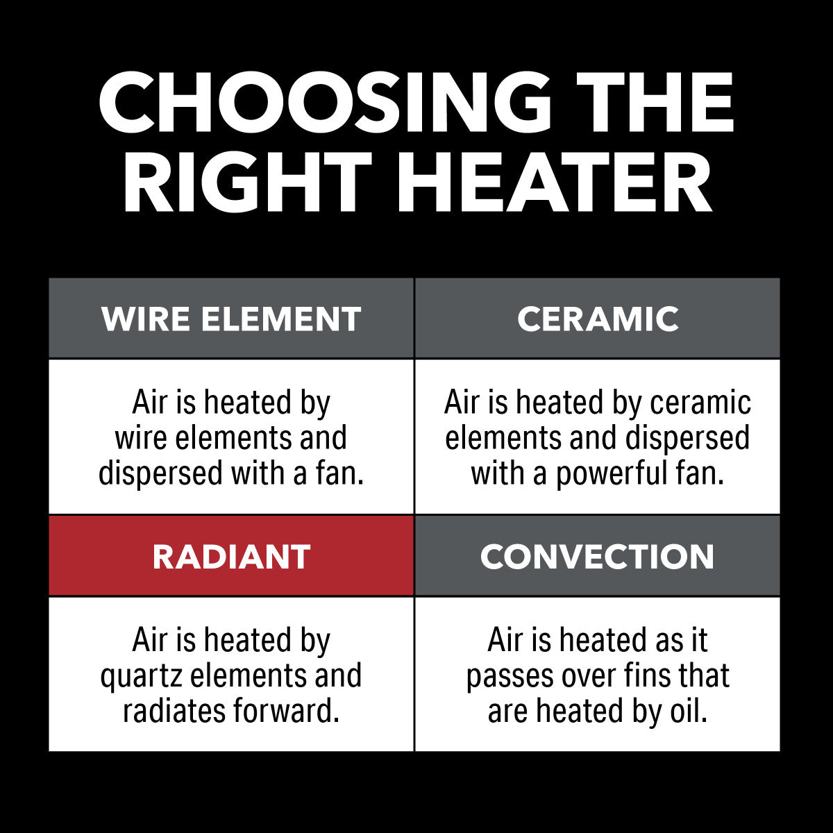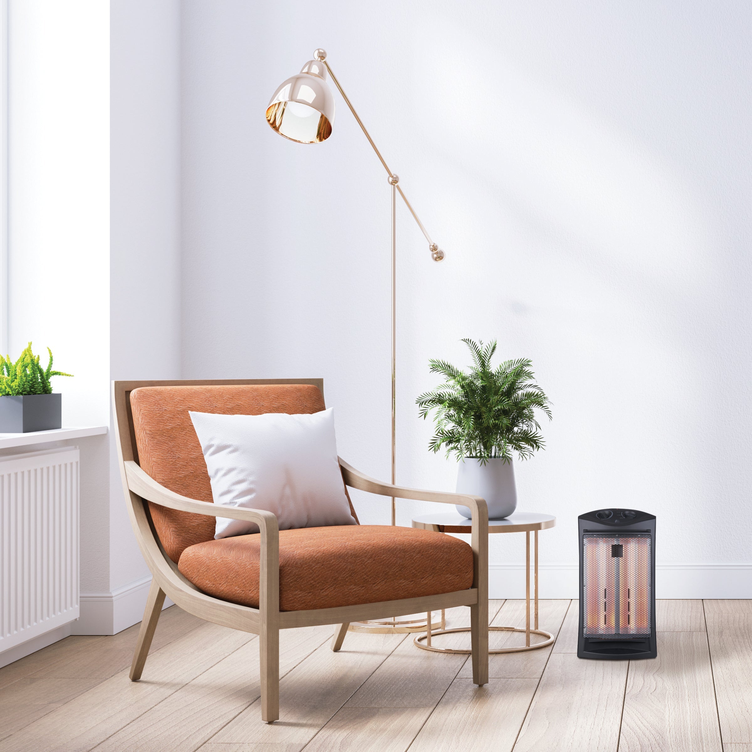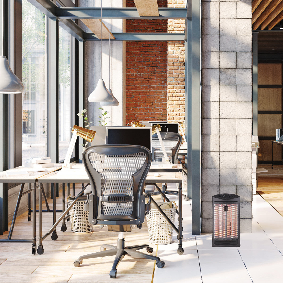Create a warm and cozy space with this 22-inch radiant heater from Perfect Aire. The dual quartz tubes heat quickly and give off a warm glow while the fan-assisted heat fills your room. The easy-to-use mechanical controls let you switch between 1500 watts of power on high, and 750 watts on low while the adjustable thermostat maintains a constant comfortable temperature. At 12.5”W x 22.25”H x 9”D this heater is just the right size for your home office or workshop. We’ve got your back with smart safety features like overheat and tip-over protection. Just plug in and enjoy the glow.