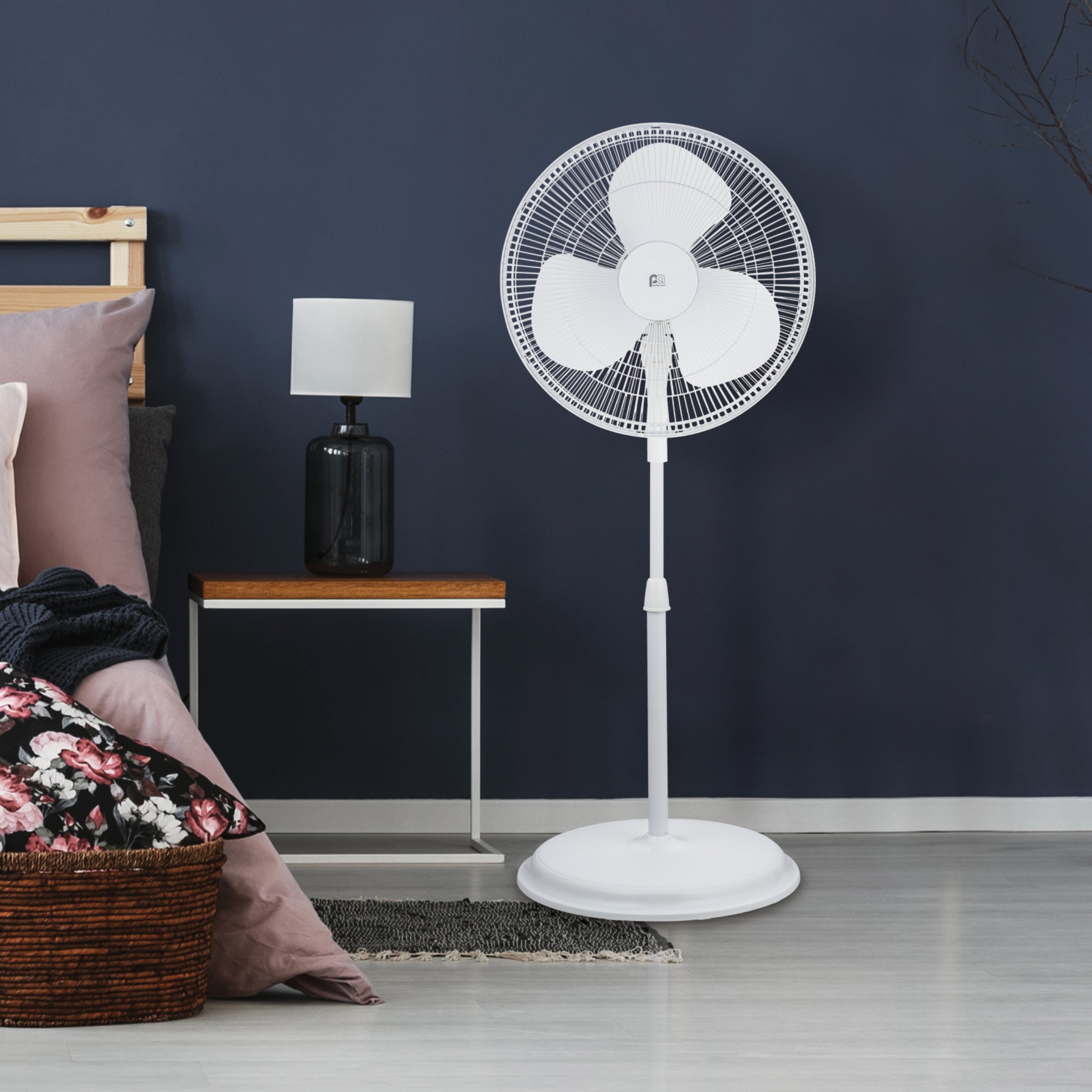 Sit back, relax and feel the cool air with the 1PAFP16 pedestal fan from Perfect Aire. This versatile fan quickly brings relief to hot spaces with the circulation of cool air, boosted by an efficient, wide-angle oscillation function. Adjustable height, a tilting head and easy-to-use push controls put you in control of your comfort, giving you the ability to adjust between 3 powerful fan speeds. Just plug in and you're on your way to quick relief!