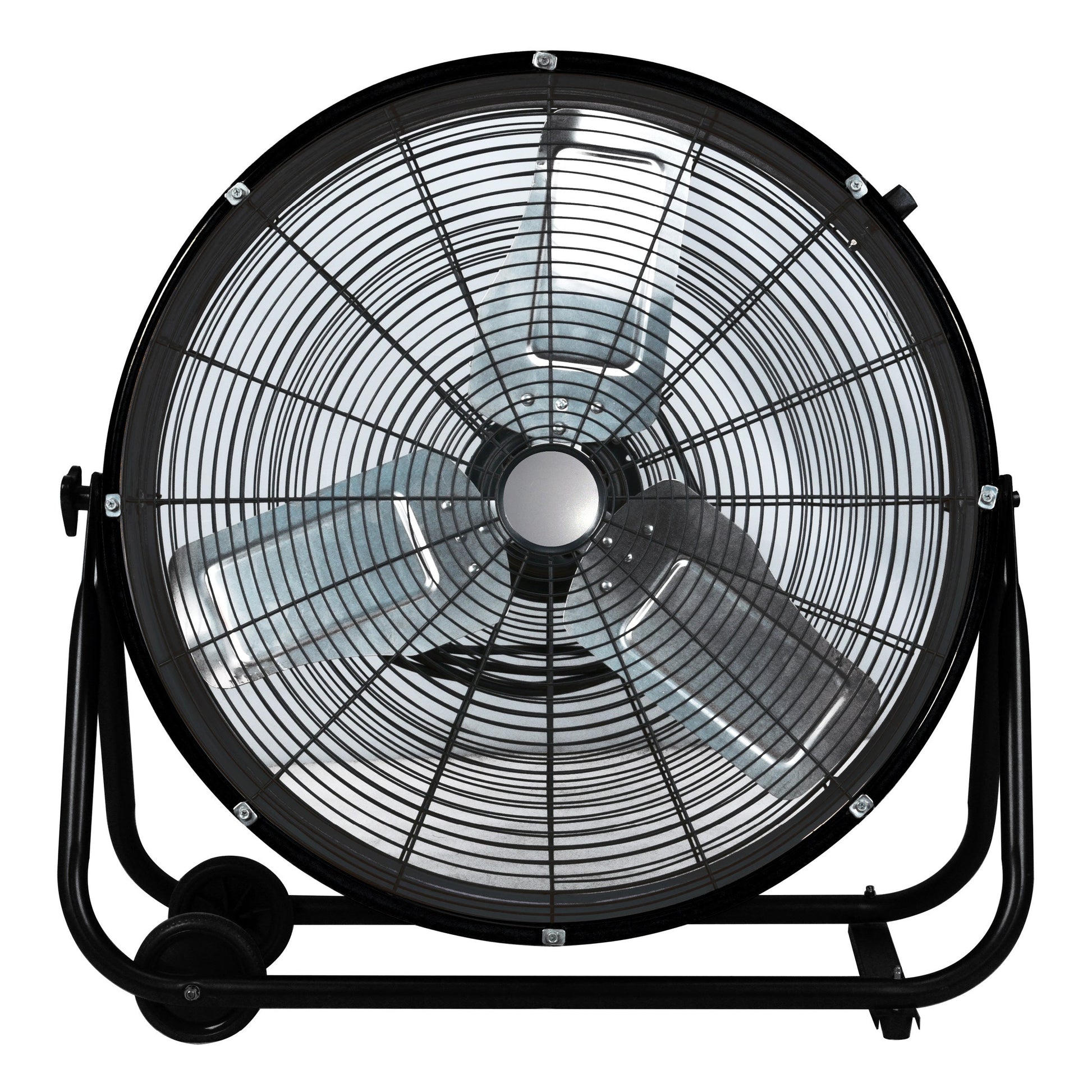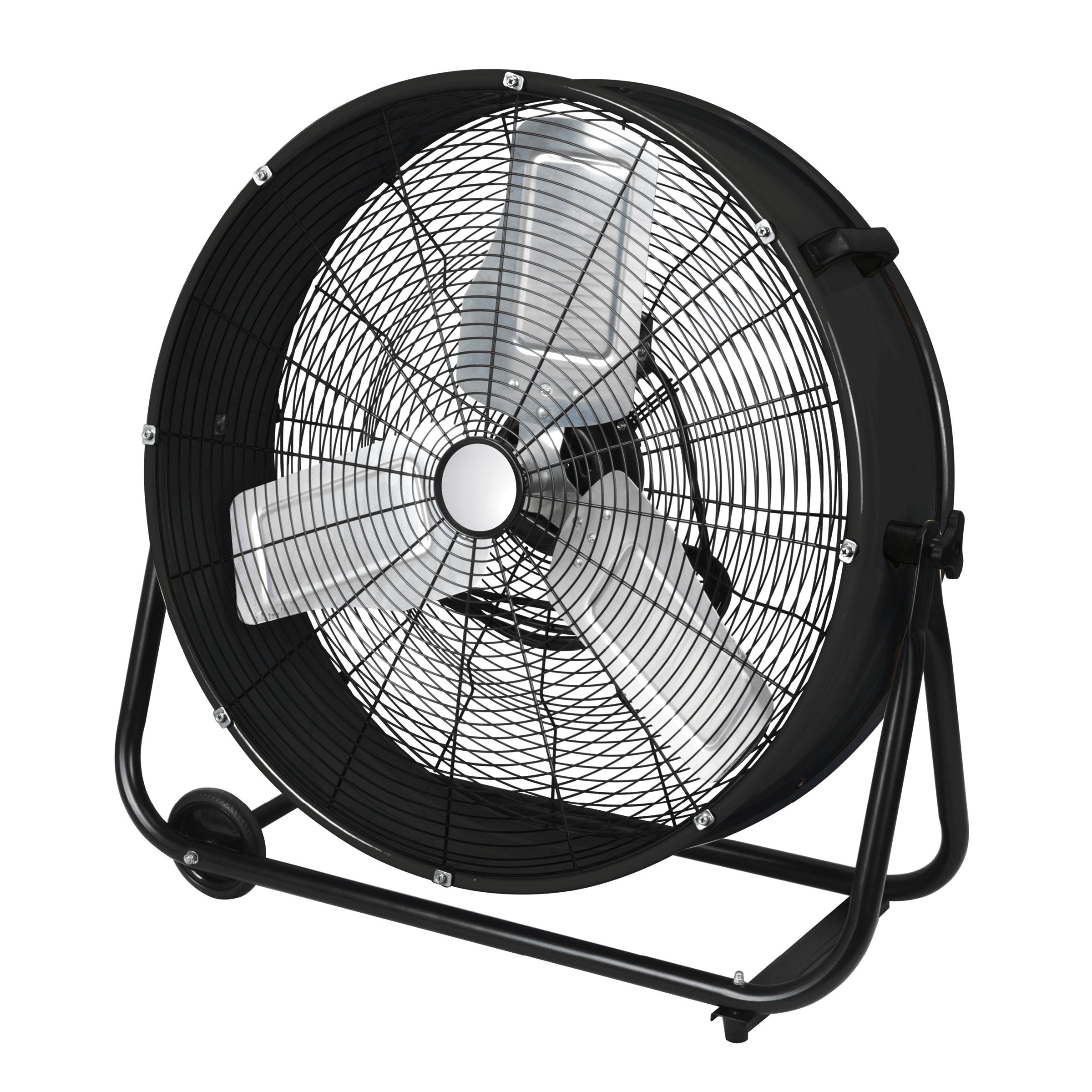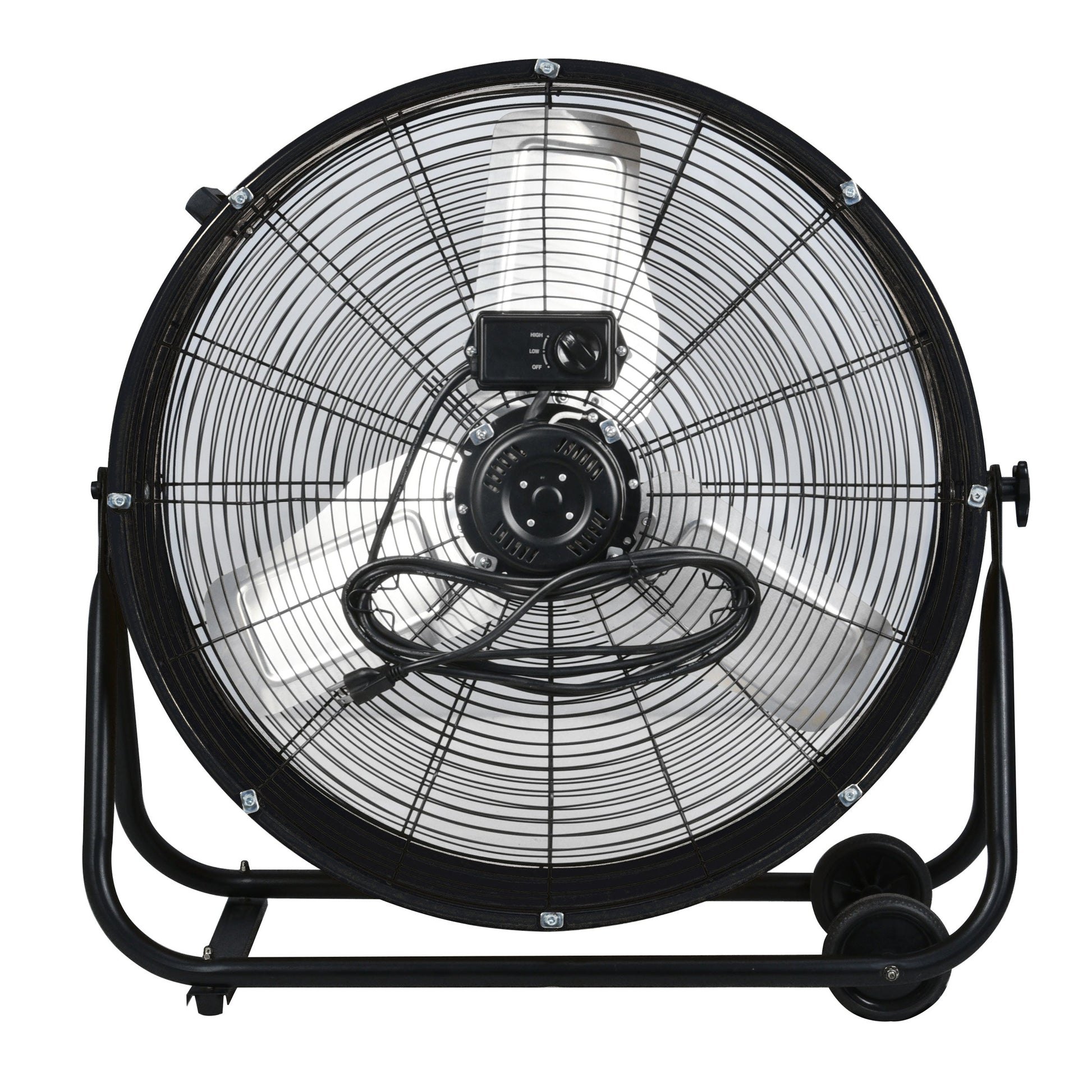 Workshop or garage feeling stuffy? Let the fresh air in with this Perfect Aire 24” high-velocity direct drive drum fan. The 24” diameter industrial-grade aluminum fan blades and 1/4 horsepower direct drive motor deliver up to 7,700 cubic feet of air per minute. The all-metal construction and durable powder coated finish makes it ideal for rugged working conditions. Roll it anywhere with the 4” never flat wheels and 6 foot power cord. The adjustable tilting head lets you direct the air where you need it most. Best of all, the heavy-duty copper-wound permanently lubricated motor means you get Comfort… Built to Last™.