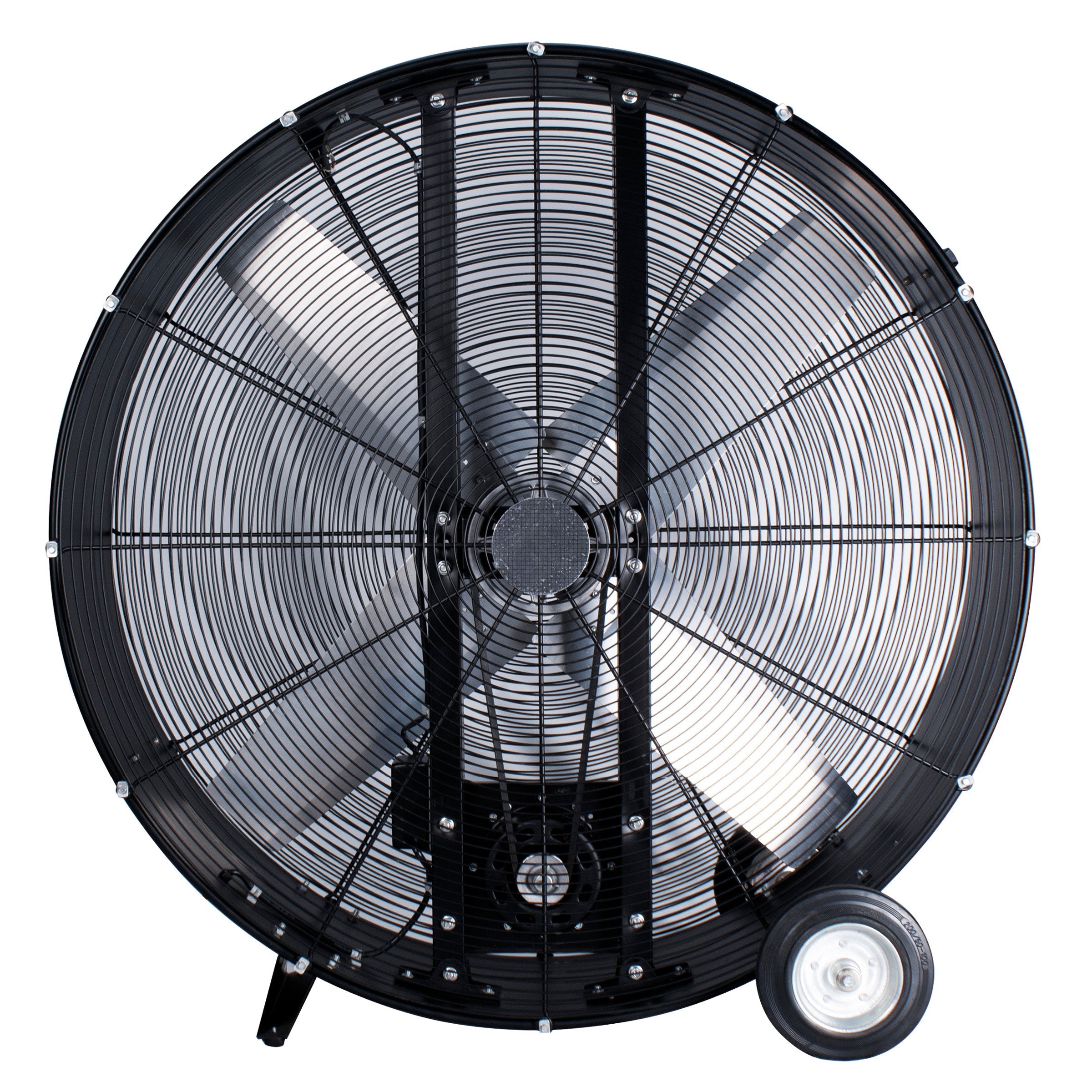 When you need to cool down a large space in a flash, look no further than this Perfect Aire 42” high-velocity belt drive drum fan. The 42” diameter industrial-grade aluminum fan blades and 1 horsepower belt drive motor deliver up to 17,600 cubic feet of air per minute. The all-metal construction and durable powder coated finish makes it ideal for rugged working conditions like construction sites and warehouses. Roll it anywhere you need with the 8” never flat wheels and 10 foot power cord. Best of all, the heavy-duty copper-wound permanently lubricated motor means you get Comfort… Built to Last™.