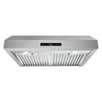 Upgrade your kitchen with the sleek and professional Cosmo UMC30 range hood in brushed stainless steel. Its touchscreen and backlit display give you easy control over fan speed, LED lights, and a convenient timer. With an efficient 380 CFM airflow and durable, dishwasher-safe stainless steel filters, cleaning up is a breeze. Plus, the UMC30 comes with a 120V 3 prong power cord for hassle-free installation. Experience professional luxury at factory direct prices with Cosmo Appliances.