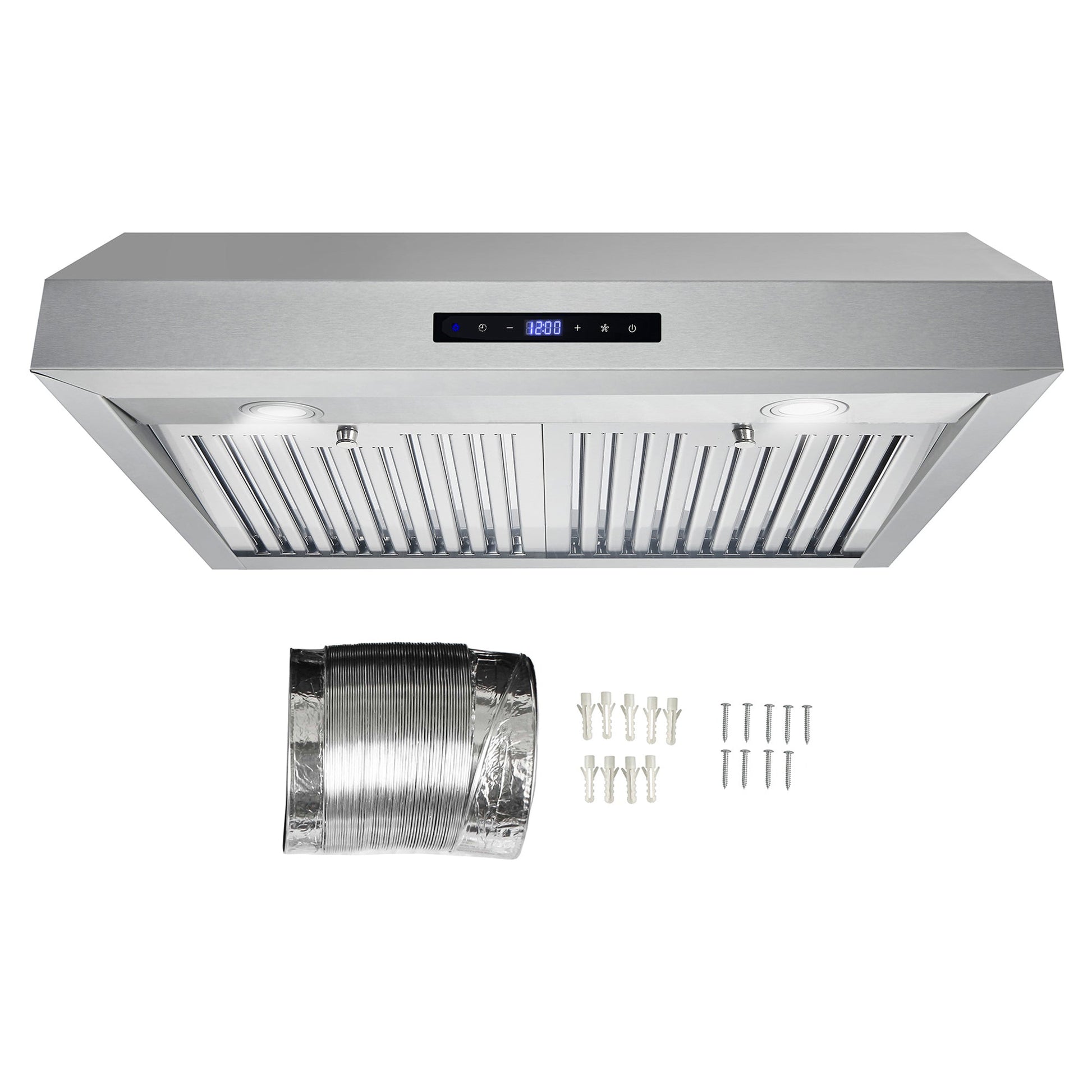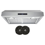 Upgrade your kitchen with the sleek and professional Cosmo UMC30 range hood in brushed stainless steel. Its touchscreen and backlit display give you easy control over fan speed, LED lights, and a convenient timer. With an efficient 380 CFM airflow and durable, dishwasher-safe stainless steel filters, cleaning up is a breeze. Plus, the UMC30 comes with a 120V 3 prong power cord for hassle-free installation. Experience professional luxury at factory direct prices with Cosmo Appliances.