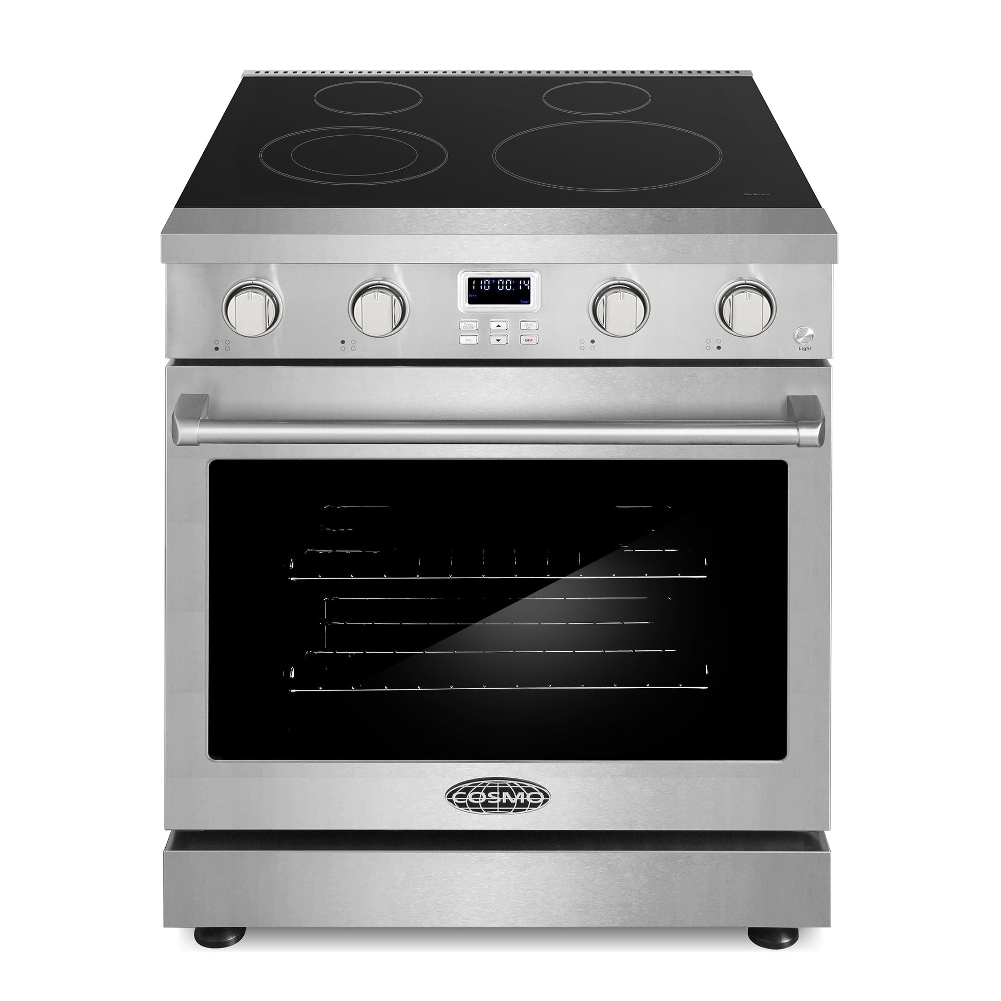Experience the exceptional performance and refined design of the Cosmo Haven 30" Electric Range in your kitchen. Crafted from premium stainless steel, this range combines durability and elegance seamlessly. The smooth ceramic glass cooktop boasts four efficient burners, including a versatile dual-element burner that accommodates various cookware sizes. The expansive 4.8 cu. ft. convection oven utilizes a powerful fan and six specialized cooking modes to ensure perfectly cooked meals every time, providing precise control for a variety of dishes. Prioritizing safety and convenience, the COS-ERC304KBD also includes a cool-touch oven handle, digital display, and easy-to-clean interiors, making it the ideal choice for any home chef looking for both style and functionality.