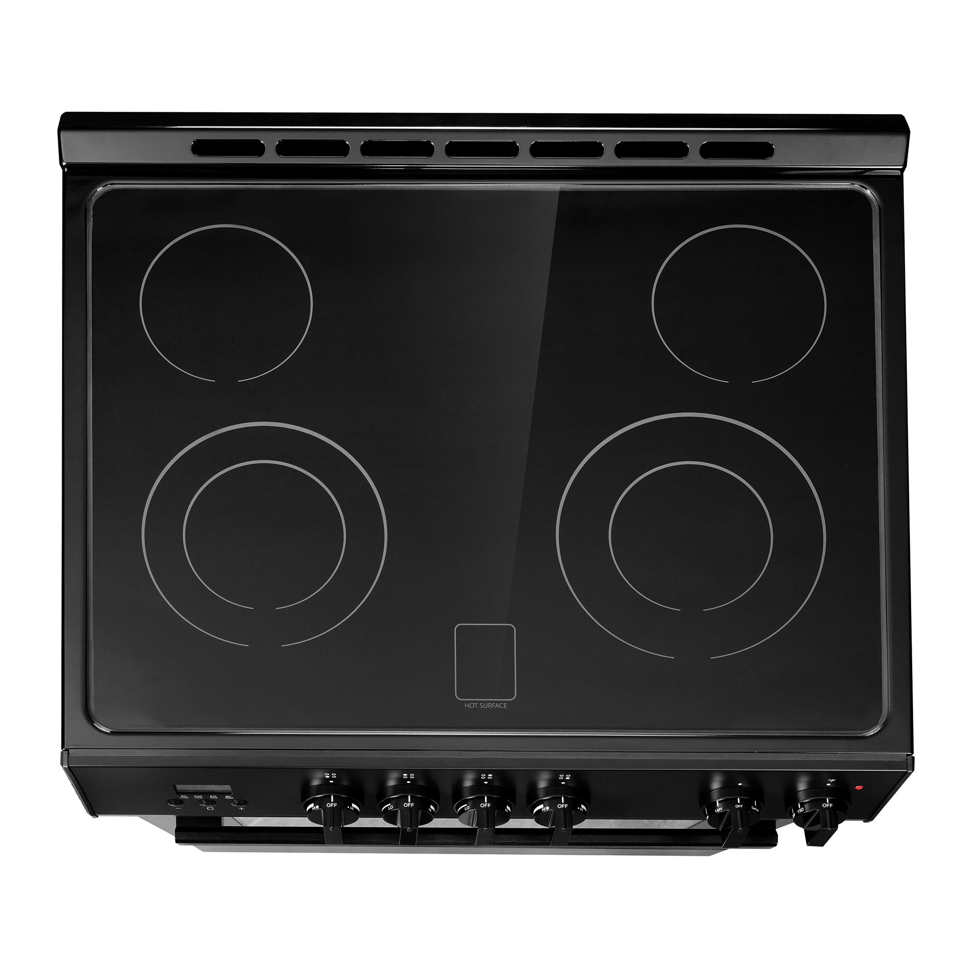 - Smooth Black Glass Cooktop: Easy-to-clean surface with four burners for versatile cooking: 3700W dual-element burner (8.75" 2500W / 5.5" 1200W), 3200W dual-element burner (8.75" 2200W / 5.5" 1000W), and Two 1200W single-element burners.