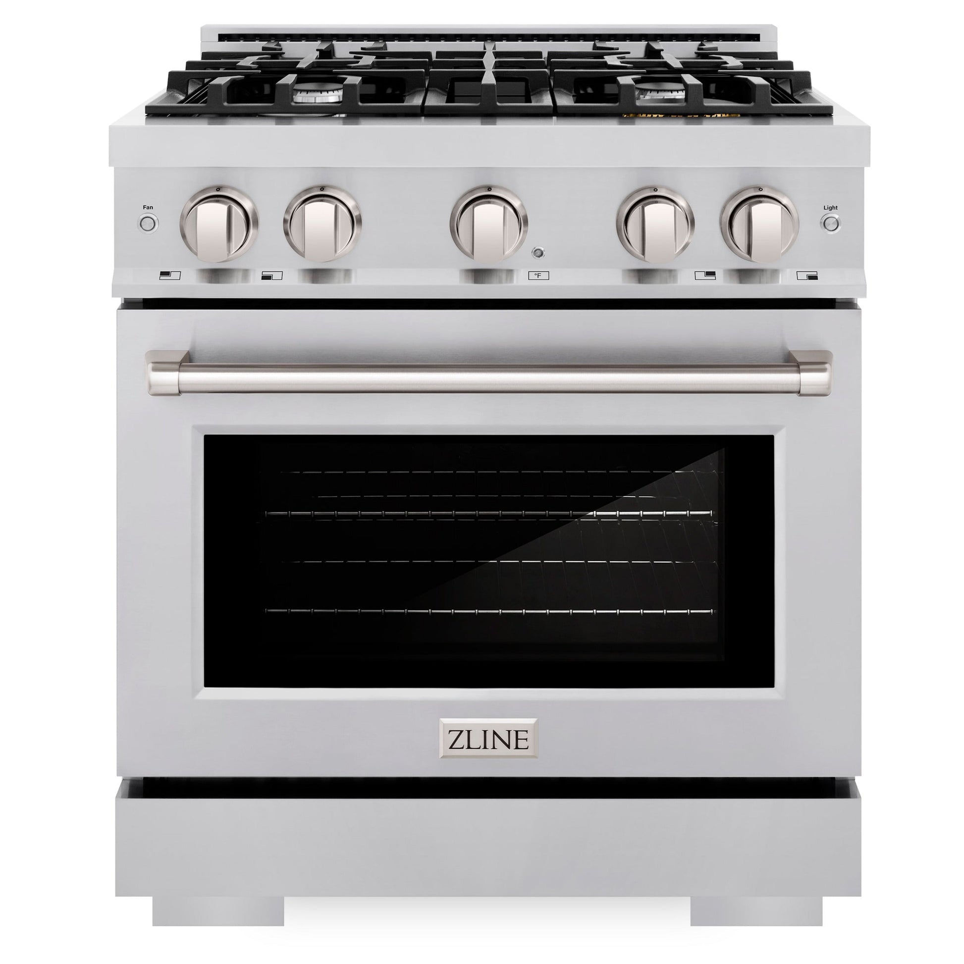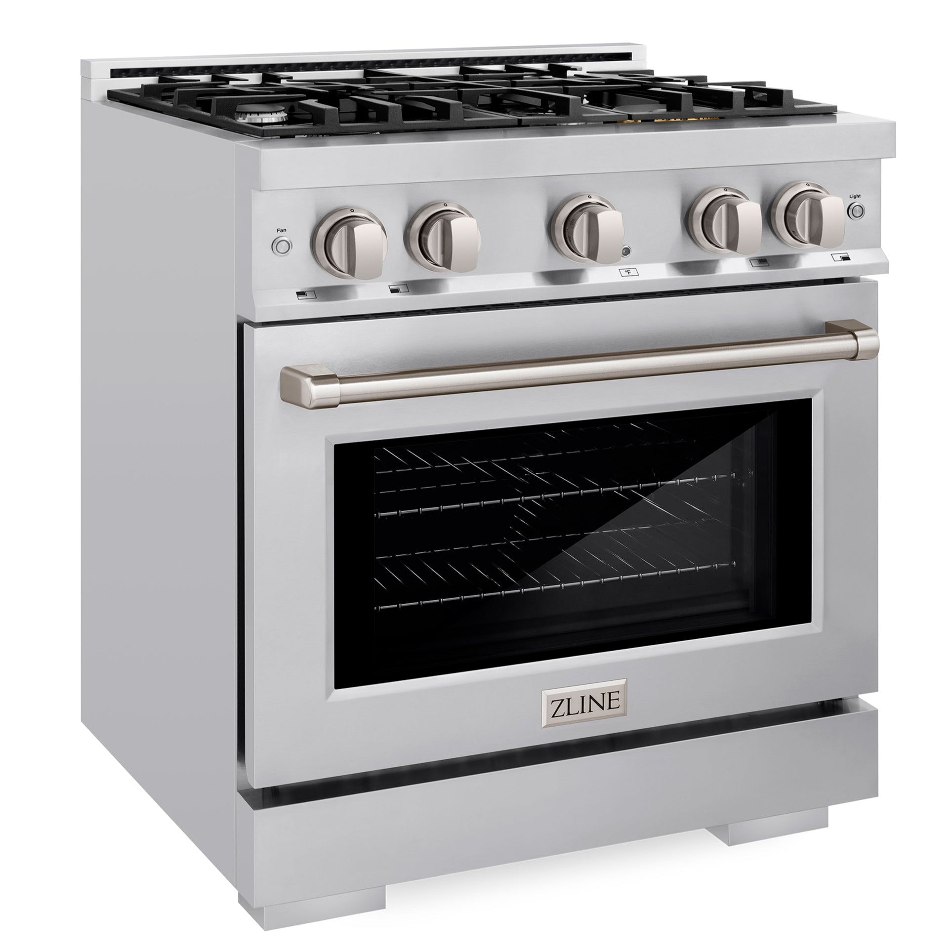 Luxury isn't meant to be desired - it's meant to be attainable. The ZLINE 30 in. 4.2 cu. ft. Select Gas Range with 4 Burner Cooktop and Convection Gas Oven in Stainless Steel (HGR30) combines the elegance of a hand-finished porcelain gas cooktop with 4 Italian-made auto-reignition burners, a gas convection oven with an energy-efficient cooling fan to ensure quiet operation, and a Horizon oven door window design allowing you to master every meal. With a modern, timeless style and refined functionality, ZLINE Select Gas Ranges are masterfully crafted to deliver an elevated culinary experience.