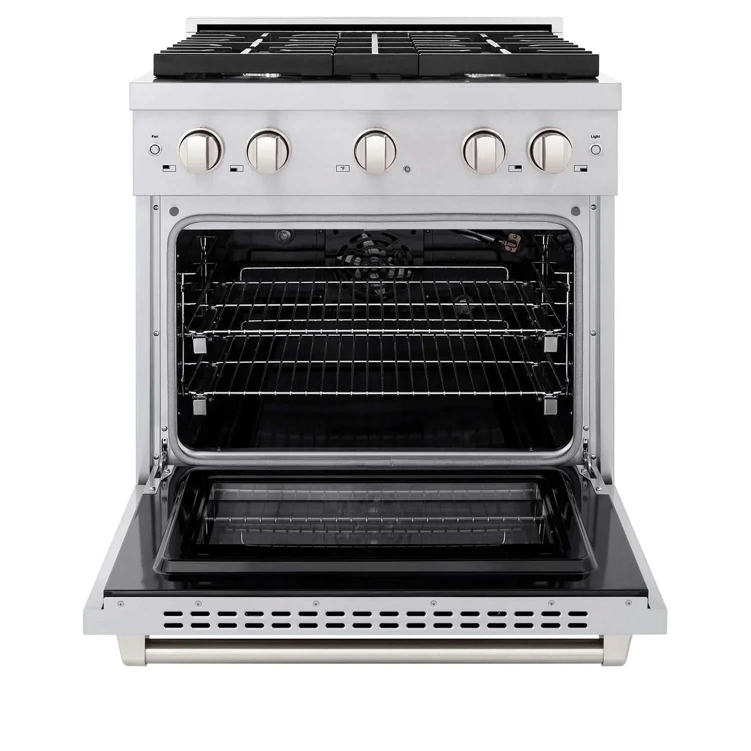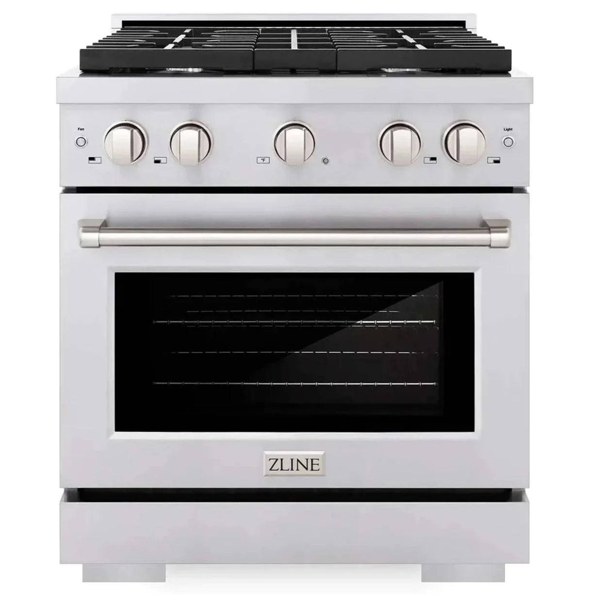 Luxury isn't meant to be desired - it's meant to be attainable. The ZLINE 30 in. 4.2 cu. ft. Paramount Gas Range with 4 Burner Cooktop and Convection Gas Oven in Stainless Steel (SGR30) features a versatile gas cooktop with 4 Italian-made auto-reignition burners, a high-performing gas convection oven, enhanced cast iron grates, and a Horizon oven door window design allowing you to master every meal. With a modern, timeless style and refined functionality, ZLINE Paramount Gas Ranges are masterfully crafted to deliver an elevated culinary experience.