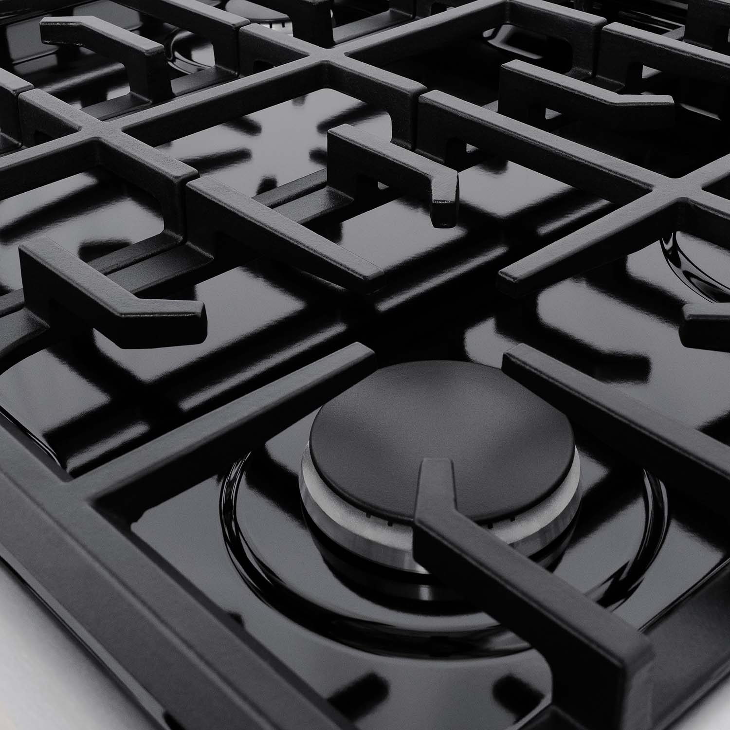 - Italian-Made Auto-Reignition Burners: 4 Italian-made gas burners utilize automatic reignition innovation for improved temperature control and cooktop safety