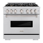 ZLINE 36" 5.2 cu. ft. Classic Dual Fuel Range in Stainless Steel with 6 Brass Burners, CDR-BR-36