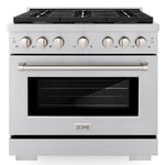 Luxury isn't meant to be desired - it's meant to be attainable. The ZLINE 36 in. 5.2 cu. ft. Paramount Dual Fuel Range with Gas Cooktop and Electric Convection Oven in Stainless Steel with 6 Brass Burners (SDR-BR-36) combines the versatility of a gas cooktop with 6 Italian-made brass auto-reignition burners, an electric convection oven with digital thermostat technology, enhanced cast iron grates, and a Horizon oven door window design allowing you to master every meal. With a modern, timeless style and refined functionality, ZLINE Paramount Dual Fuel Ranges are masterfully crafted to deliver an elevated culinary experience.
