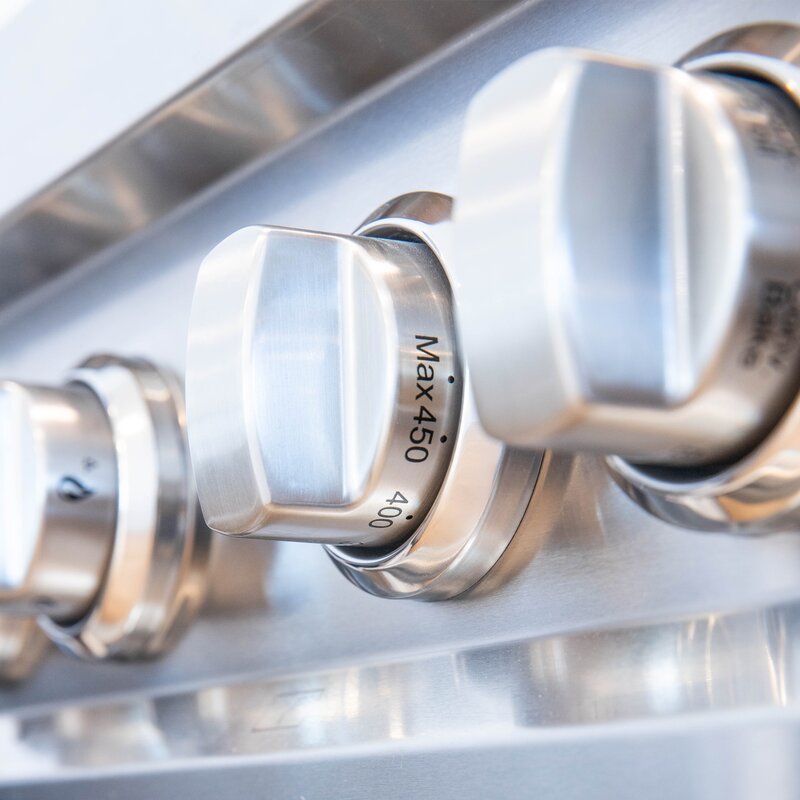 - Heavy duty stainless steel knob controls with smooth action turn.