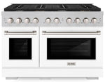 Luxury isn’t meant to be left desired—it’s meant to be attainable. The ZLINE 48 in. 6.7 cu. ft. Paramount Double Oven Dual Fuel Range with 8 Burner Gas Cooktop in Satin Stainless Steel with White Matte Doors (SDRS-WM-48) combines the versatility of a gas cooktop with 8 Italian-made auto-reignition burners, a large high-performing electric convection oven and a small bake-and-broil oven with digital thermostat technology, enhanced cast iron grates, and beautiful white matte doors with Horizon window designs allowing you to master every meal. With a modern, timeless style and refined functionality, ZLINE Paramount Dual Fuel Ranges are masterfully crafted to deliver an elevated culinary experience.