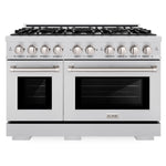 Luxury isn’t meant to be left desired—it’s meant to be attainable. The ZLINE 48 in. 6.7 cu. ft. Select Double Oven Dual Fuel Range with 8 Burner Gas Cooktop in Satin Stainless Steel (HDRS-48) combines the elegance of a hand-finished porcelain gas cooktop with 8 Italian-made auto-reignition burners, a large electric convection oven with an energy-efficient cooling fan to ensure quiet operation, a small bake-and-broil oven, and Horizon oven door window designs allowing you to master every meal. With a modern, timeless style and refined functionality, ZLINE Select Dual Fuel Ranges are masterfully crafted to deliver an elevated culinary experience.