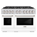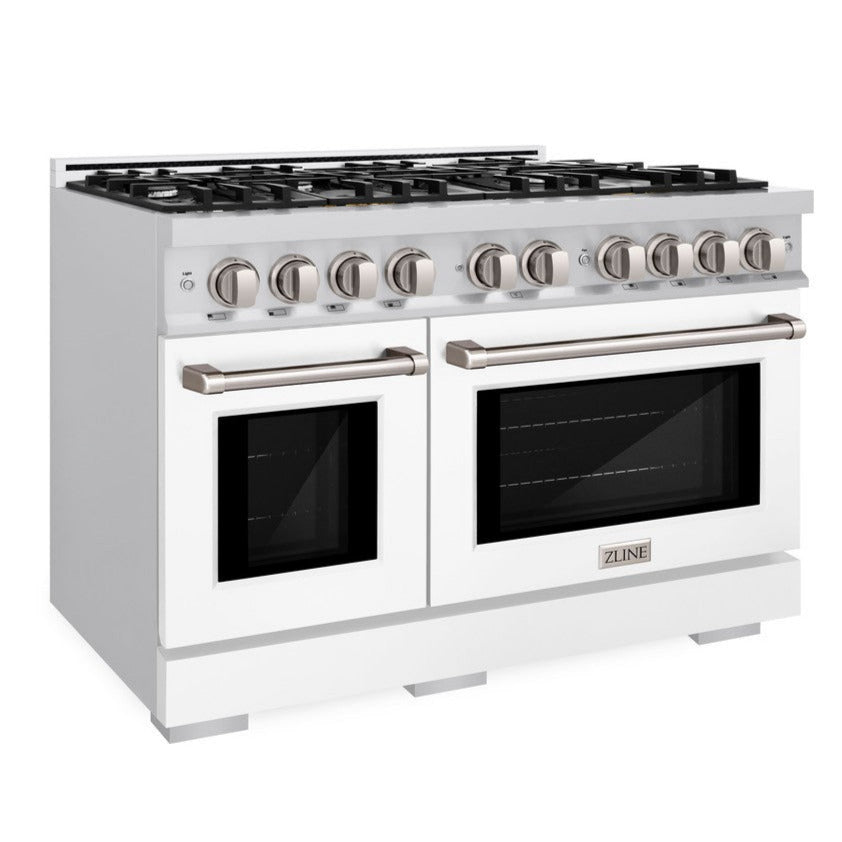 Luxury isn't meant to be desired - it's meant to be attainable. The ZLINE 48 in. 6.7 cu. ft. Select Double Oven Dual Fuel Range with 8 Burner Gas Cooktop in Stainless Steel with White Matte Doors (HDR-WM-48) combines the elegance of a hand-finished porcelain gas cooktop with 8 Italian-made auto-reignition burners, a large electric convection oven with an energy-efficient cooling fan to ensure quiet operation, a small bake-and-broil oven, and beautiful white matte doors with Horizon window designs allowing you to master every meal. With a modern, timeless style and refined functionality, ZLINE Select Dual Fuel Ranges are masterfully crafted to deliver an elevated culinary experience.