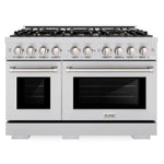 Luxury isn't meant to be desired - it's meant to be attainable. The ZLINE 48 in. 6.7 cu. ft. Select Double Oven Gas Range in Stainless Steel with 8 Brass Burners (HGR-BR-48) combines the elegance of a hand-finished porcelain gas cooktop with 8 Italian-made brass auto-reignition burners, a large gas convection oven with an energy-efficient cooling fan to ensure quiet operation, a small baking oven, and Horizon oven door window designs allowing you to master every meal. With a modern, timeless style and refined functionality, ZLINE Select Gas Ranges are masterfully crafted to deliver an elevated culinary experience.