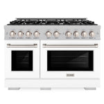 Luxury isn’t meant to be left desired—it’s meant to be attainable. The ZLINE 48 in. 6.7 cu. ft. Select Double Oven Gas Range with 8 Burner Cooktop in Satin Stainless Steel with White Matte Doors (HGRS-WM-48) combines the elegance of a hand-finished porcelain gas cooktop with 8 Italian-made auto-reignition burners, a large gas convection oven with an energy-efficient cooling fan to ensure quiet operation, a small baking oven, and beautiful white matte doors with Horizon window designs allowing you to master every meal. With a modern, timeless style and refined functionality, ZLINE Select Gas Ranges are masterfully crafted to deliver an elevated culinary experience.