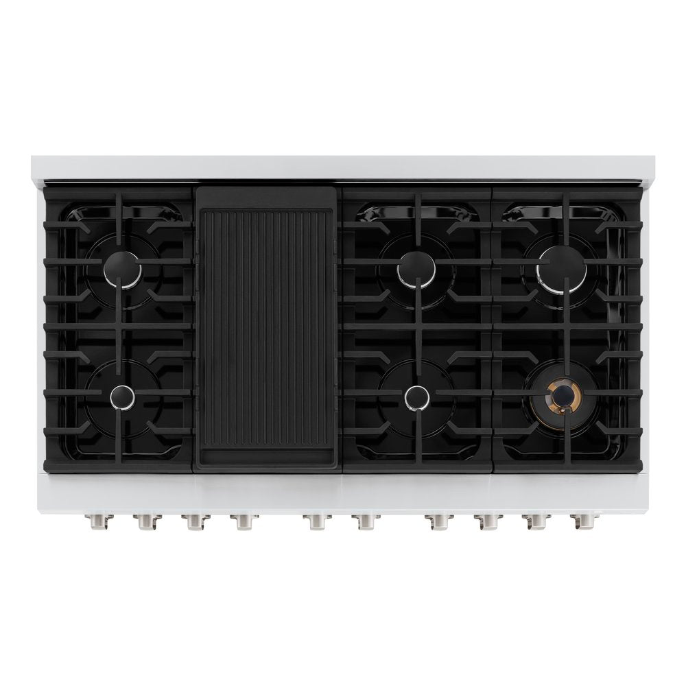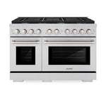 Luxury isn't meant to be desired - it's meant to be attainable. The ZLINE 48 in. 6.7 cu. ft. Paramount Gas Range with 8 Burner Cooktop and Dual Ovens in Stainless Steel (SGR48) features a versatile gas cooktop with 8 Italian-made auto-reignition burners, a large high-performing gas convection oven, a small baking oven, enhanced cast iron grates, and Horizon oven door window designs allowing you to master every meal. With a modern, timeless style and refined functionality, ZLINE Paramount Gas Ranges are masterfully crafted to deliver an elevated culinary experience.
