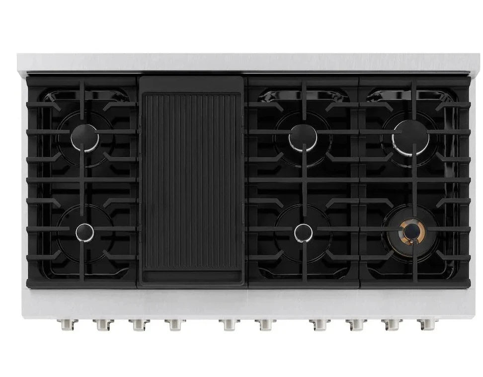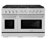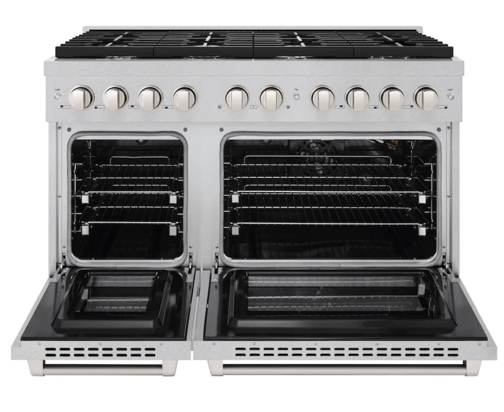 Luxury isn’t meant to be left desired—it’s meant to be attainable. The ZLINE 48 in. 6.7 cu. ft. Paramount Double Oven Gas Range with 8 Burner Cooktop in Satin Stainless Steel (SGRS-48) features a versatile gas cooktop with 8 Italian-made auto-reignition burners, a large high-performing gas convection oven, a small baking oven, enhanced cast iron grates, and Horizon oven door window designs allowing you to master every meal. With a modern, timeless style and refined functionality, ZLINE Paramount Gas Ranges are masterfully crafted to deliver an elevated culinary experience.