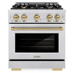 Luxury isn’t meant to be left desired—it’s meant to be attainable. The ZLINE Autograph Edition 30 in. 4.2 cu. ft. Select Gas Range with 4 Burner Cooktop and Convection Gas Oven in Satin Stainless Steel and Champagne Bronze Accents (HGRSZ-30-CB) combines the elegance of a hand-finished porcelain gas cooktop with 4 Italian-made auto-reignition burners, a gas convection oven with an energy-efficient cooling fan to ensure quiet operation, a Horizon oven door window design, and stunning champagne bronze knobs and handle allowing you to master every meal. With a modern, timeless style and refined functionality, ZLINE Select Gas Ranges are masterfully crafted to deliver an elevated culinary experience.