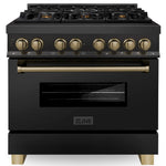 ZLINE Autograph 36" 4.6 cu. ft. Dual Fuel Range in Black Stainless Steel with Bronze Accents, RABZ-36-CB