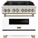 ZLINE Autograph 36" 4.6 cu. ft. Dual Fuel Range with White Matte Door and Bronze Accents, RAZ-WM-36-CB