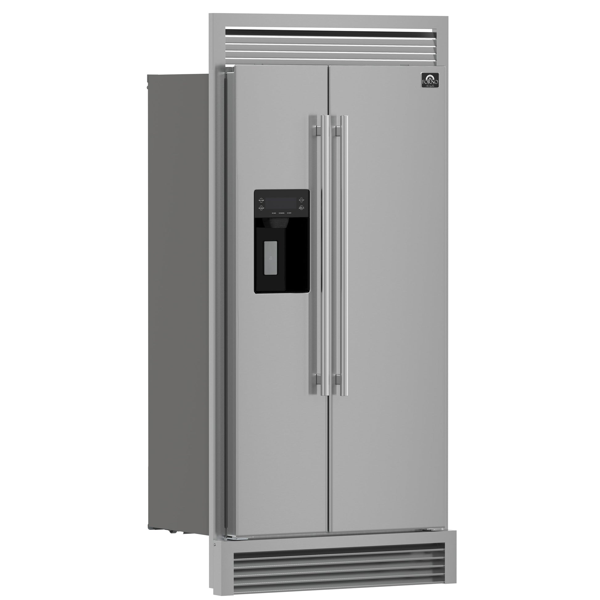 This Forno 36 Inch Side by Side Refrigerator offers 20.0 cu. ft. of capacity - 13.48 in the refrigerator and 6.53 in the Freezer. The Energy Star certified unit features interior LED lighting, total frost-free design, and adjustable shelves.