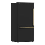 FORNO Espresso Milano 31" 17.2 cu. ft. Left Swing Refrigerator and Bottom Freezer with Ice Maker in Black and Antique Brass Handles, FFFFD1786-31BLK
