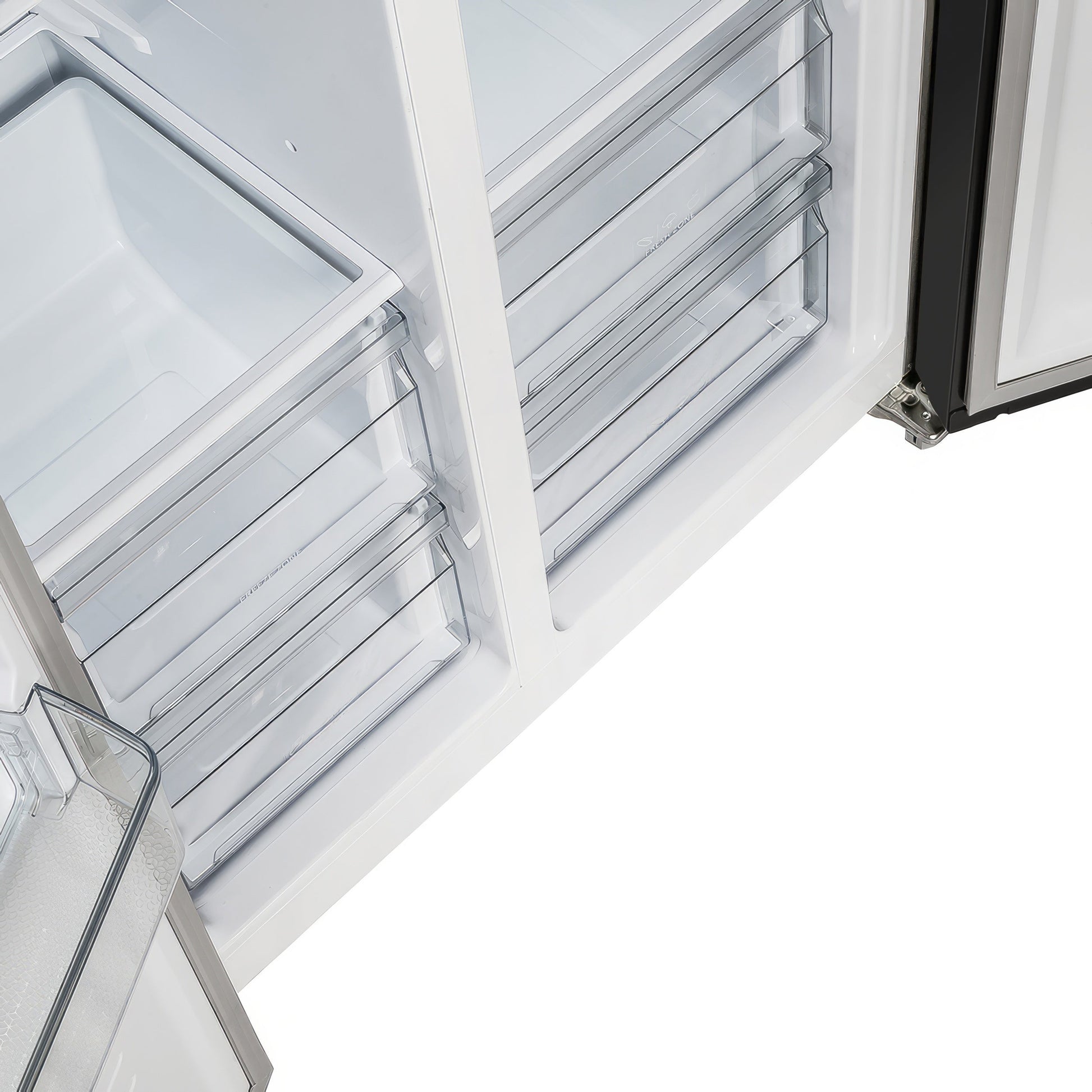 • Efficient Organization. The Fresh food compartment offers 4 spill-proof shelves, 3 door bins, and 2 drawers, while the Freezer compartment features 4 spill-proof glass shelves, 2 storage drawers, and 3 door bins, ensuring optimal organization