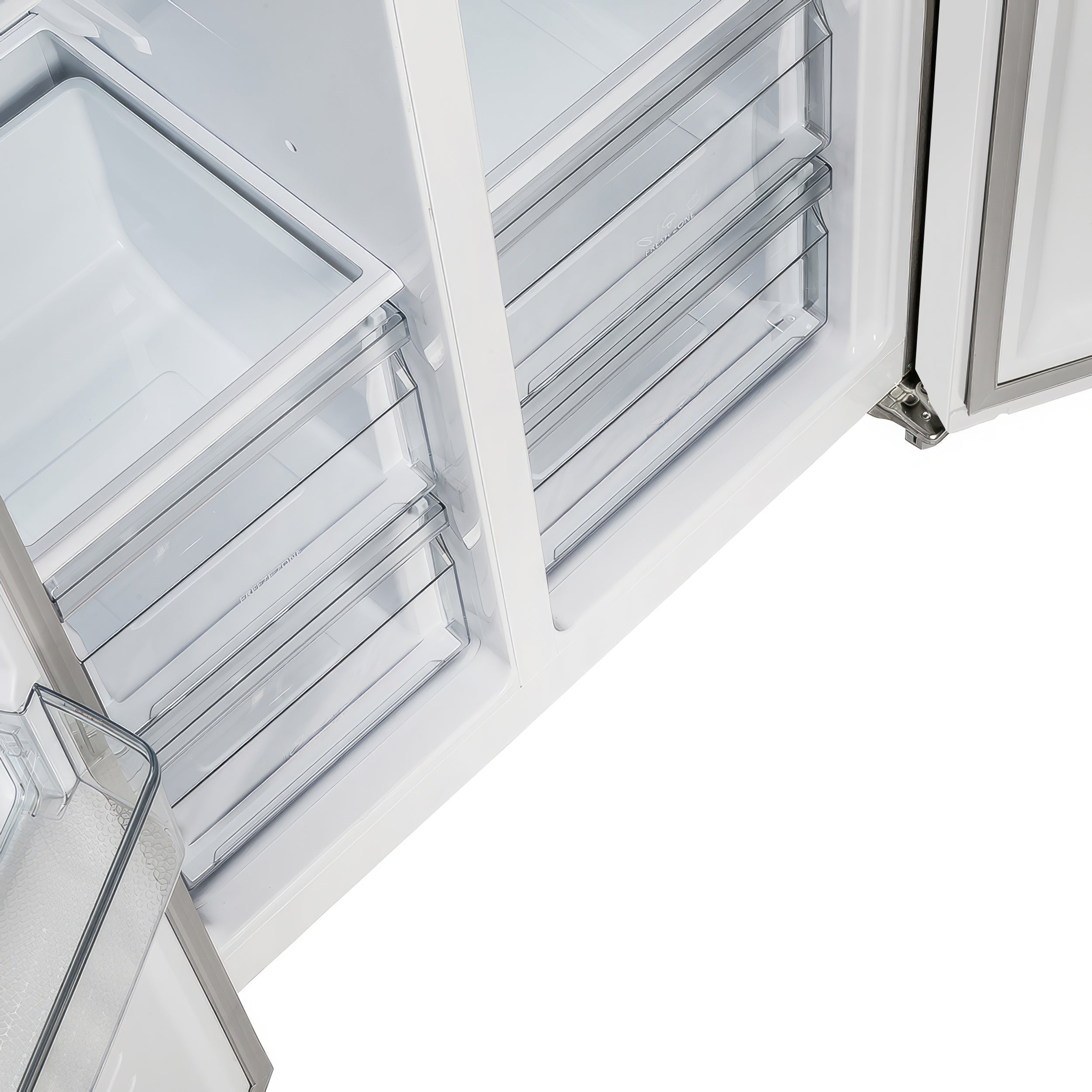 • Efficient Organization. The Fresh food compartment offers 4 spill-proof shelves, 3 door bins, and 2 drawers, while the Freezer compartment features 4 spill-proof glass shelves, 2 storage drawers, and 3 door bins, ensuring optimal organization