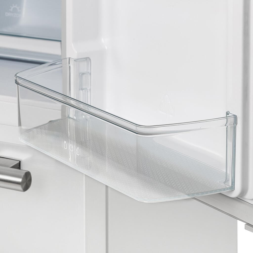 • See-Through Drawers and Door Bins. Facilitate effortless organization and instant visibility of stored items.
