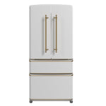 Upgrade your kitchen with Forno Luigi's 33" 18 cu. ft. French Door Refrigerator in White, featuring antique brass handles and advanced technology for optimal freshness and organization. With adjustable glass shelves, spacious door bins, and crispers, this ENERGY STAR-certified fridge offers 12 cu.ft. of fresh food storage and 6 cu.ft. of freezer space. The Super Cool and Super Freeze functions maintain ideal temperatures while LED lighting and no-frost technology make maintenance effortless. Don't miss out on this stylish and efficient addition to your home.