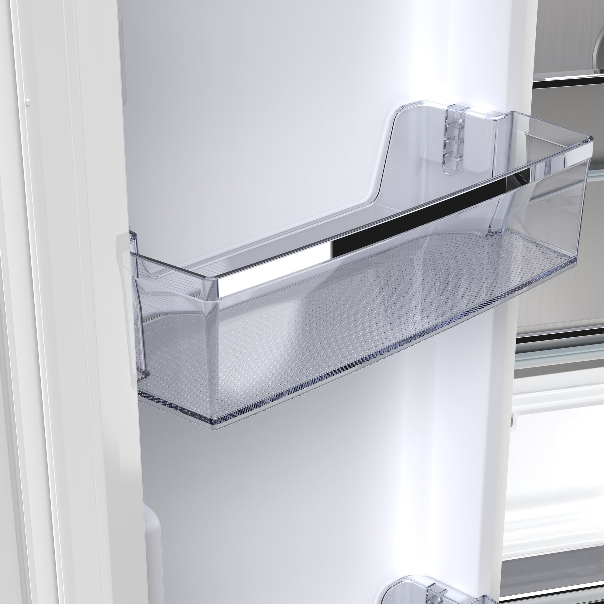 - Durable Stainless Steel Design: A stainless steel inner back panel with silver-trimmed shelves and bins offers lasting durability and a sleek, modern appearance.