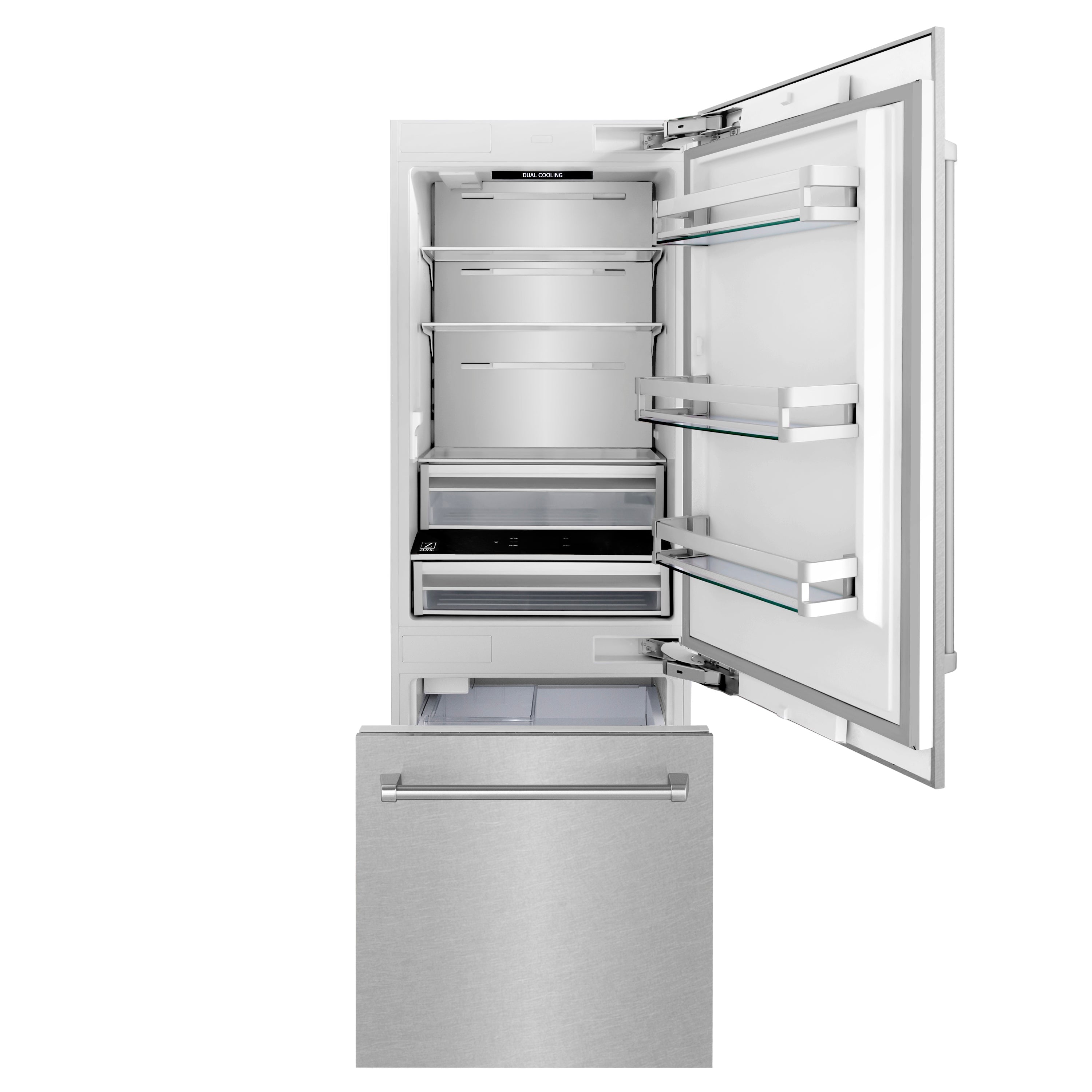 Luxury isn’t meant to be left desired—it’s meant to be attainable. The ZLINE 30 in. 16.1 cu. ft. Built-In Bottom Freezer Refrigerator with Water Dispenser and Ice Maker in Satin Stainless Steel (RBIV-SN-30) provides the ultimate upgrade to the center of your home by pairing premium dual cooling technology with enhanced storage capacity for multiple grocery items. Achieve ZLINE Attainable Luxury® excellence with innovative features designed to enhance your kitchen’s cooling and freezing capability.