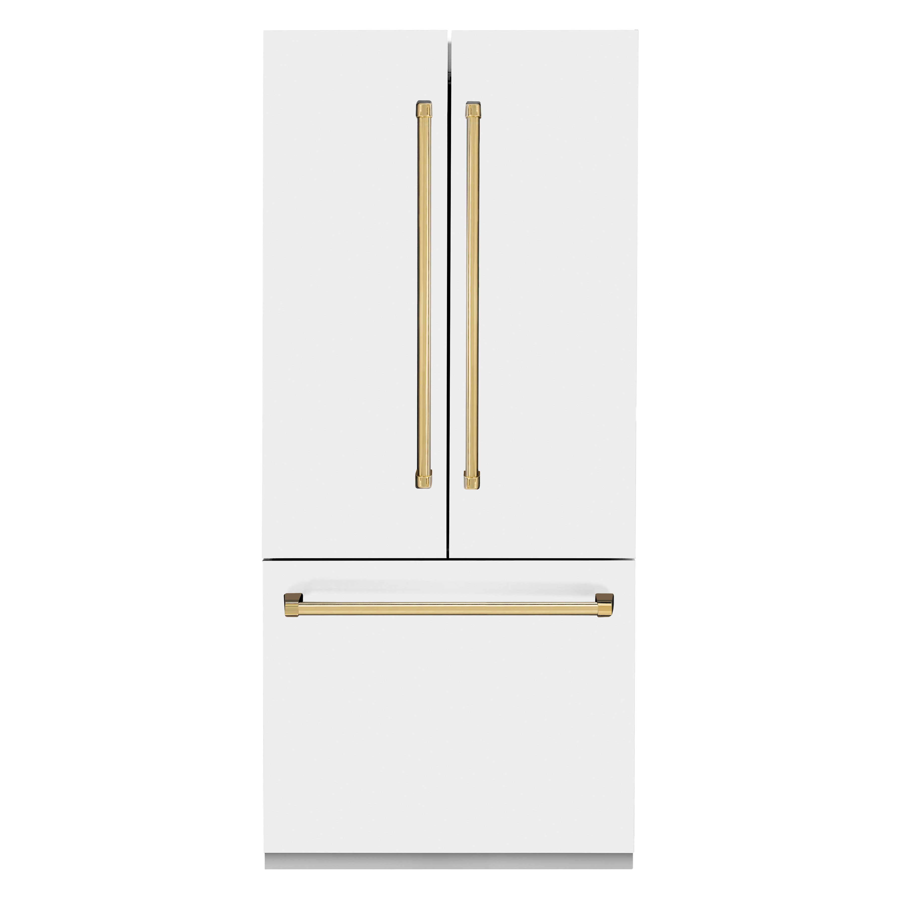 ZLINE 36 In. 19.6 cu. ft. Built-In French Door Refrigerator with Internal Water and Ice Dispenser in White Matte with Gold Accents, RBIVZ-WM-36-G