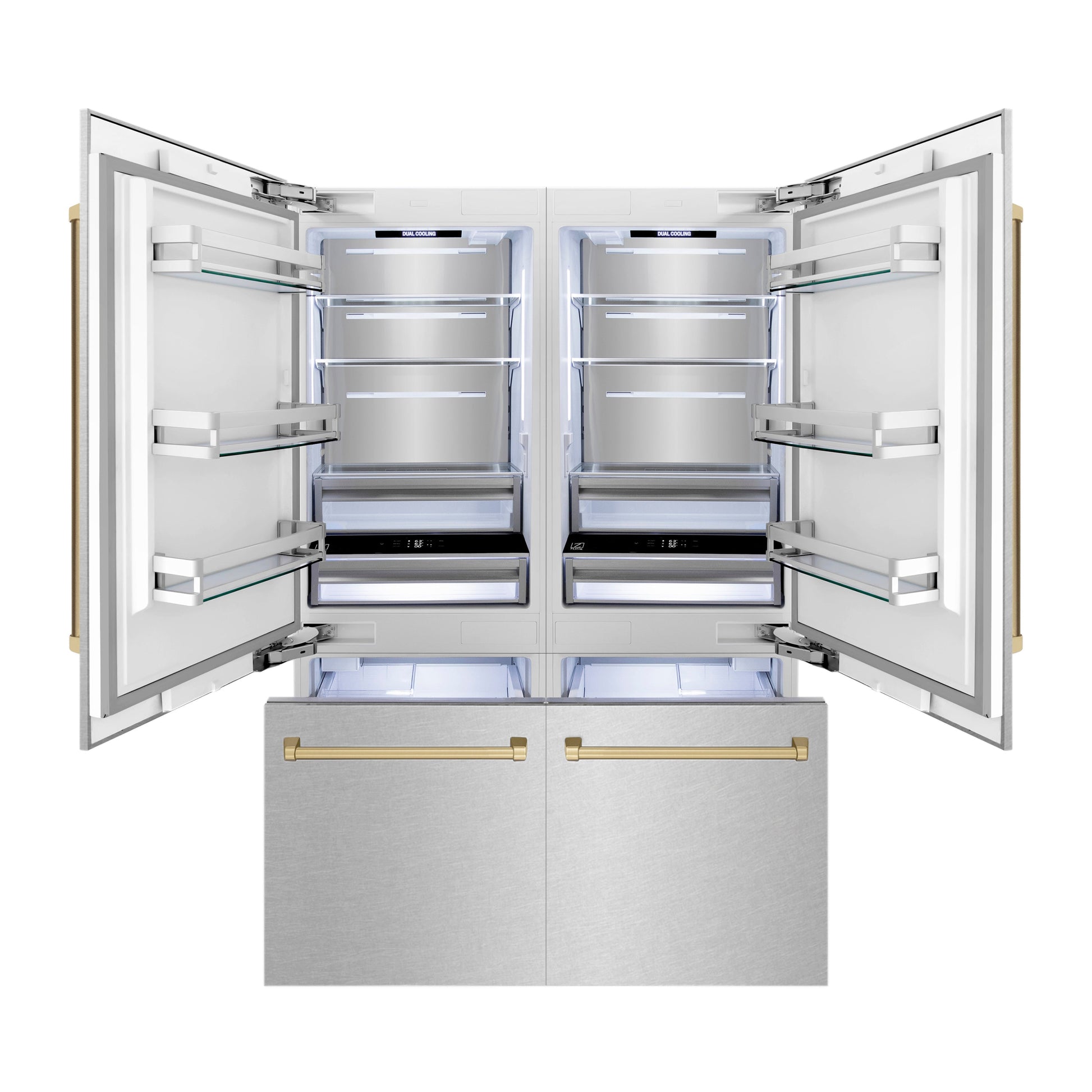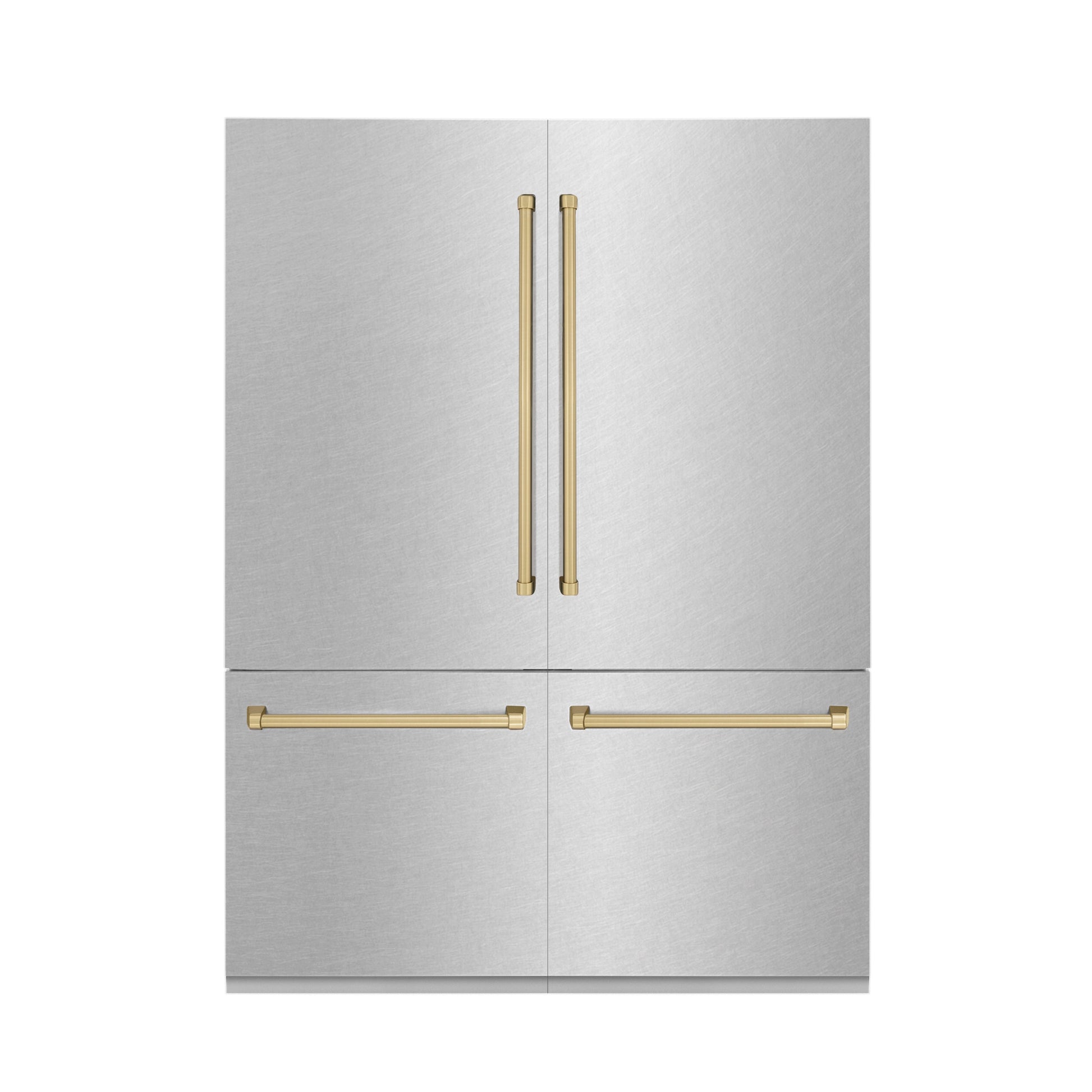 Luxury isn’t meant to be left desired—it’s meant to be attainable. The ZLINE Autograph Edition 60 in. 32.2 cu. ft. French Door Built-In Bottom Freezer Refrigerator with Water Dispenser and Ice Maker in Satin Stainless Steel with Champagne Bronze Accents (RBIVZ-SN-60-CB) provides the ultimate upgrade to the center of your home by pairing premium dual cooling technology with enhanced storage capacity for multiple grocery items. Achieve ZLINE Attainable Luxury® excellence with innovative features designed to enhance your kitchen’s cooling and freezing capability.