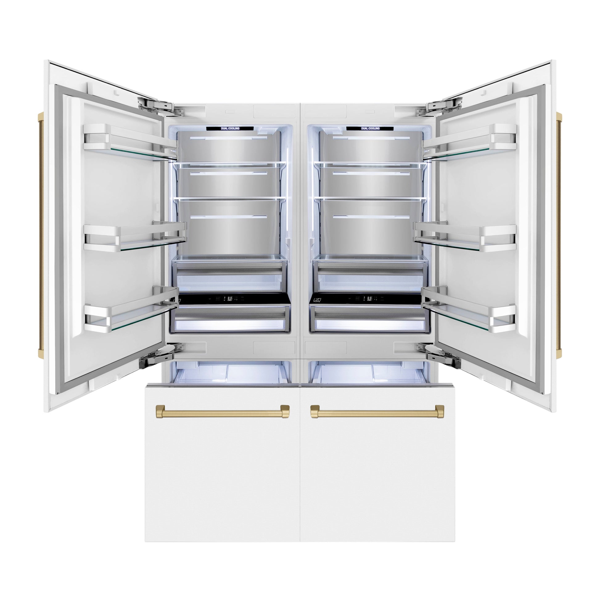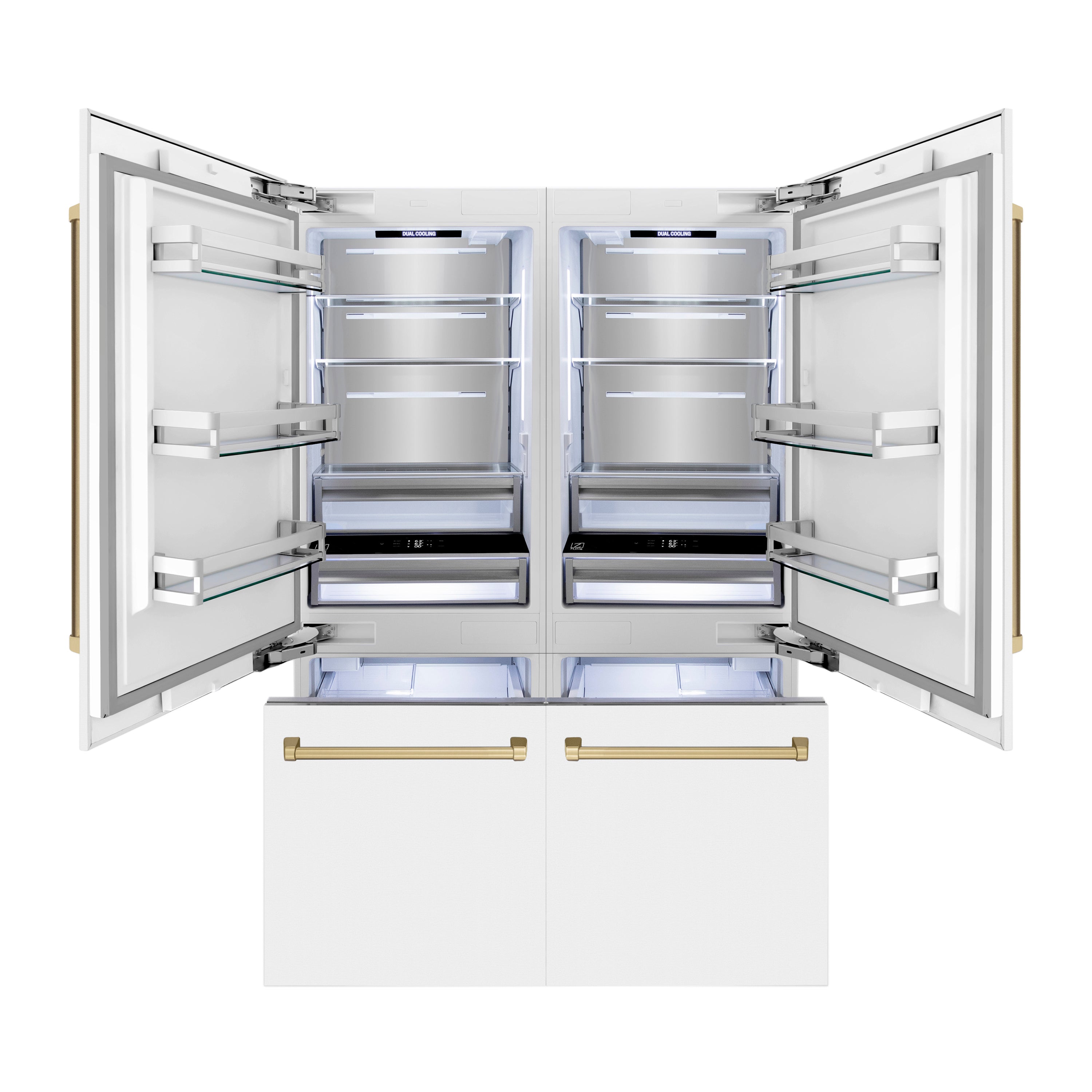 ZLINE 60 In. 32.2 cu. ft. Built-In Refrigerator with Internal Water and Ice Dispenser in White Matte with Champagne Bronze Accents, RBIVZ-WM-60-CB