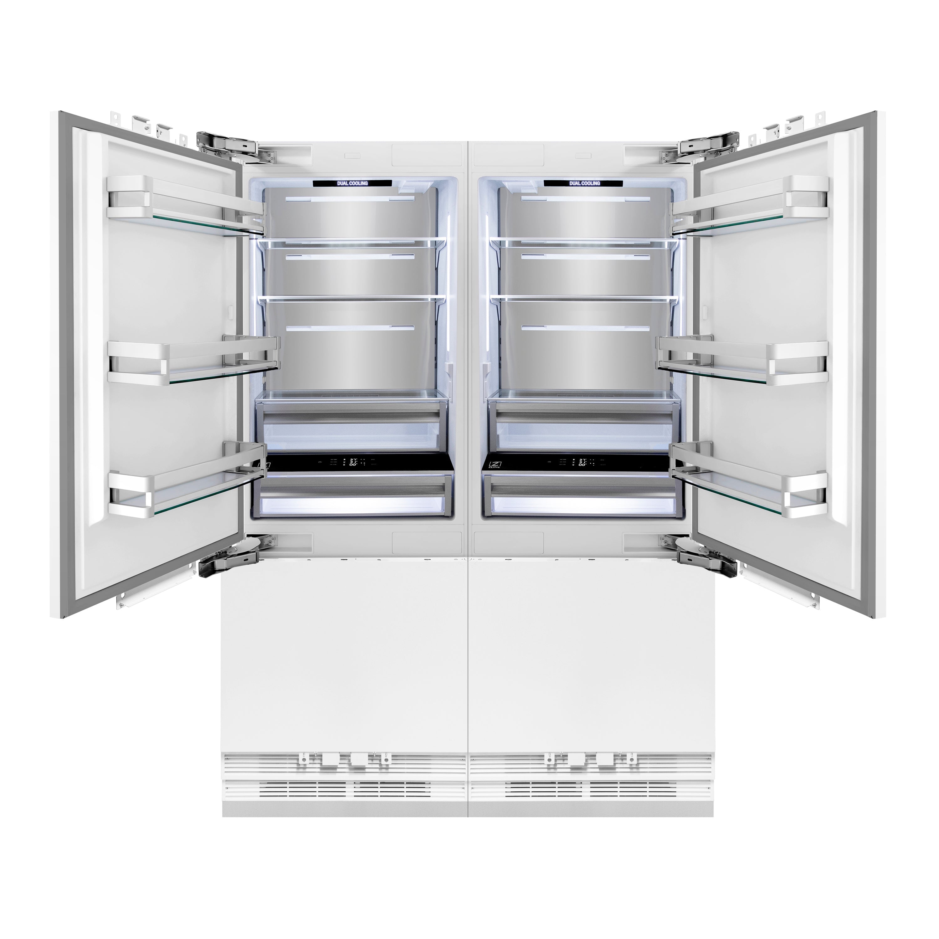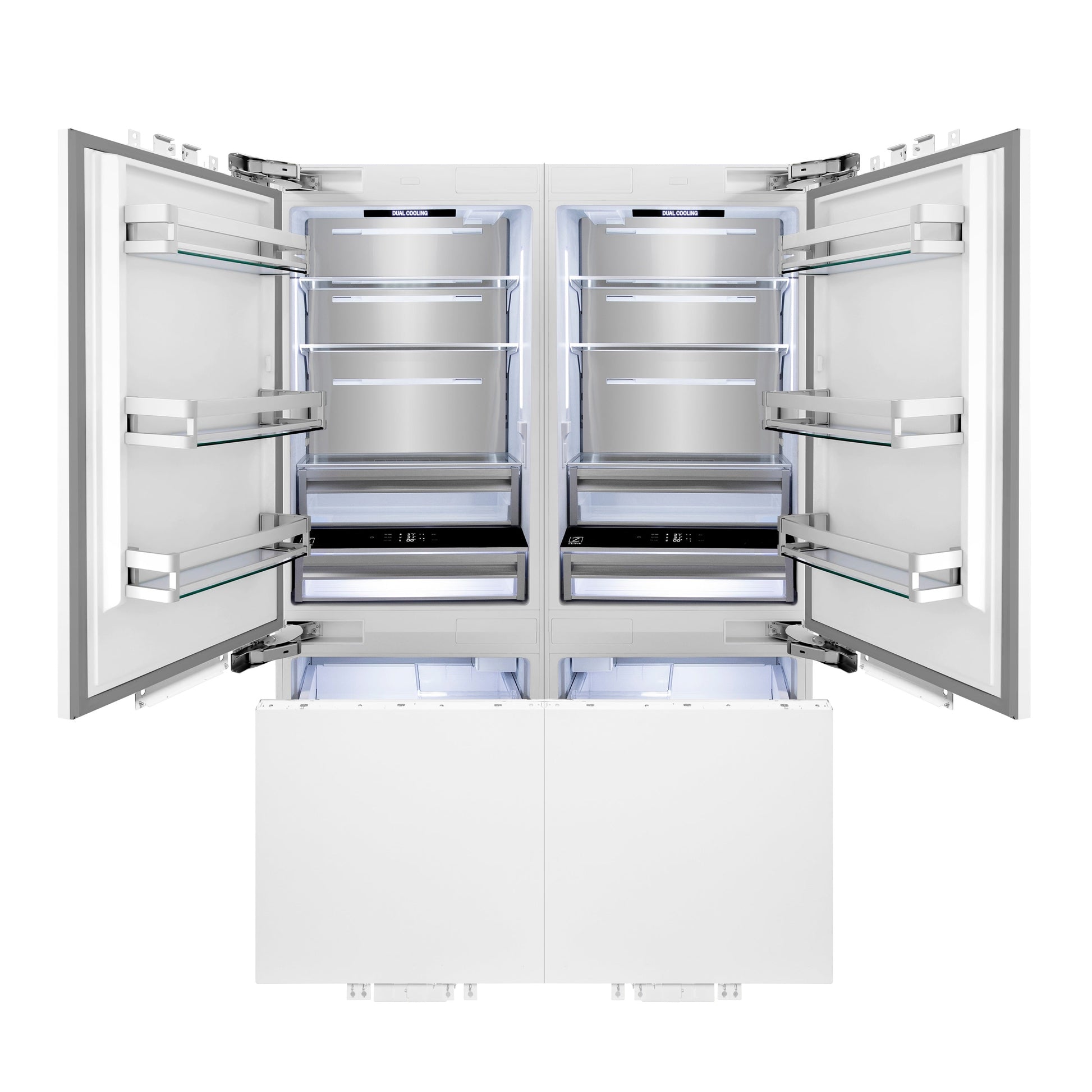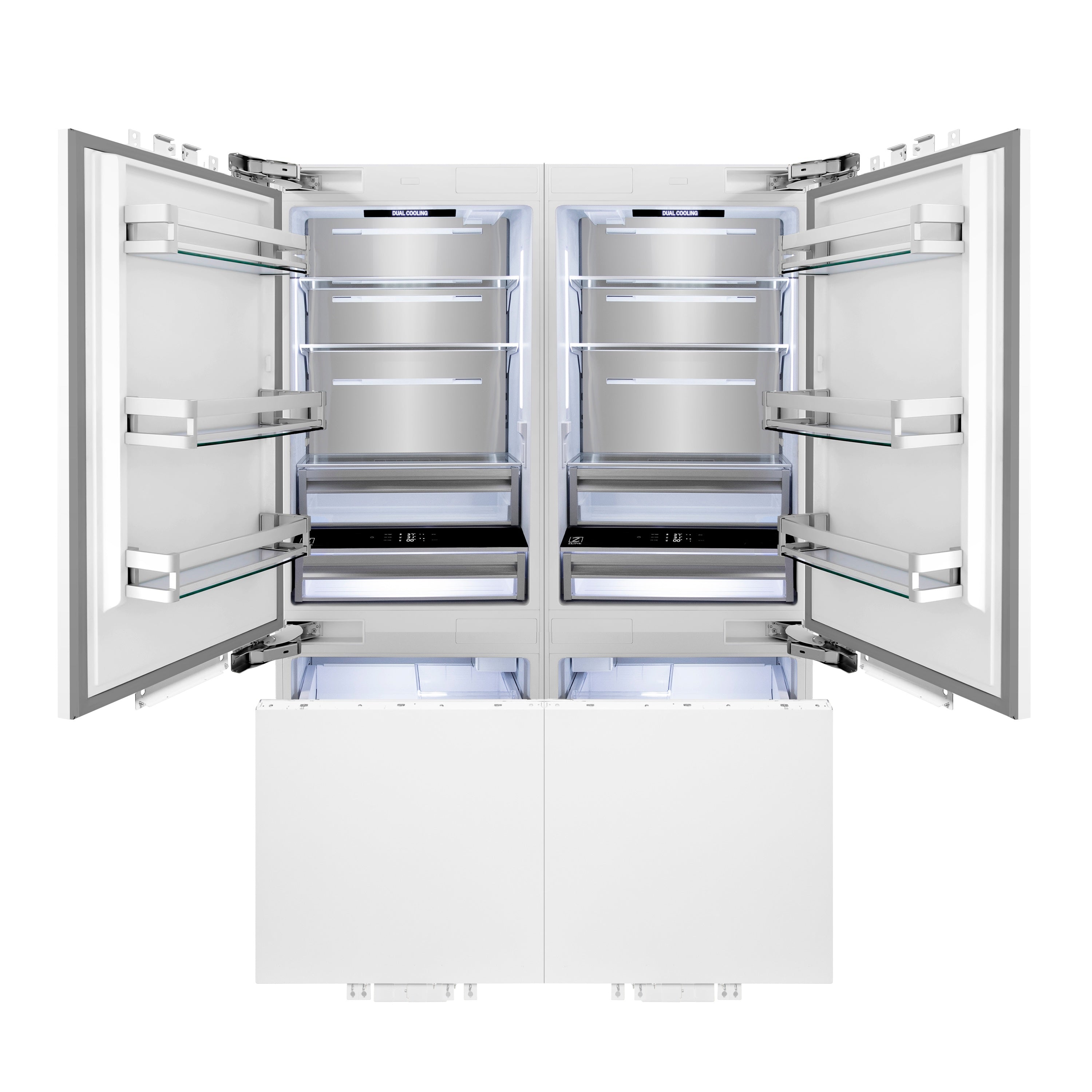 Enhance your kitchen with the ZLINE Autograph 60" 32.2 cu. ft. Built-In Panel-Ready 4-Door Bottom Freezer Refrigerator. This refrigerator combines high-quality performance with classic design, offering advanced capabilities such as adjustable temperatures, RapidChill Mode, and a concealed internal water and ice dispenser. Experience ZLINE's Attainable Luxury with this refrigerator, seamlessly blending innovation, elegance, and efficiency.