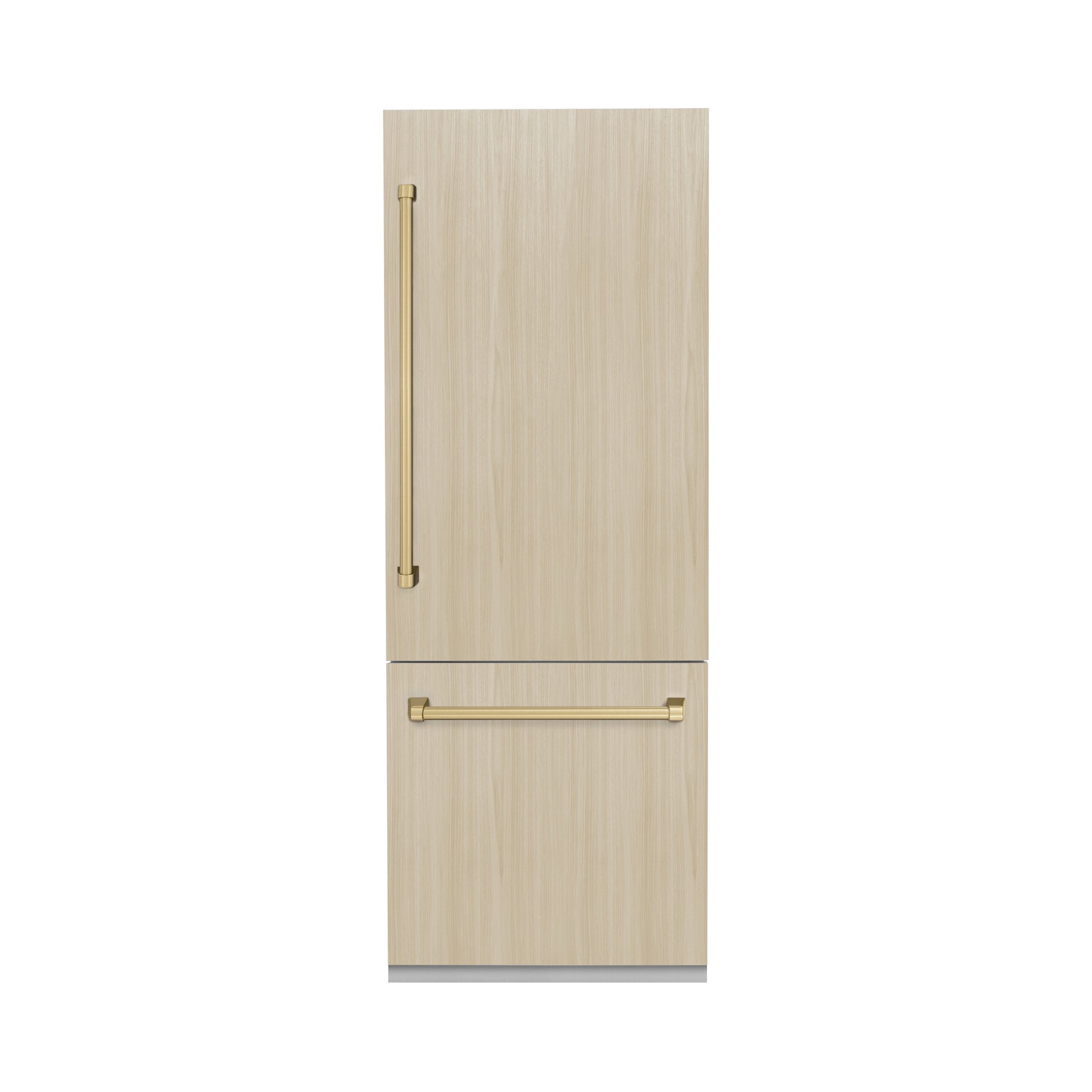 ZLINE Autograph 30" 16.1 cu. ft. Panel Ready Built-in 2-Door Bottom Freezer Refrigerator with Internal Water and Ice Dispenser with Champagne Bronze Handles, RBIVZ-30-CB