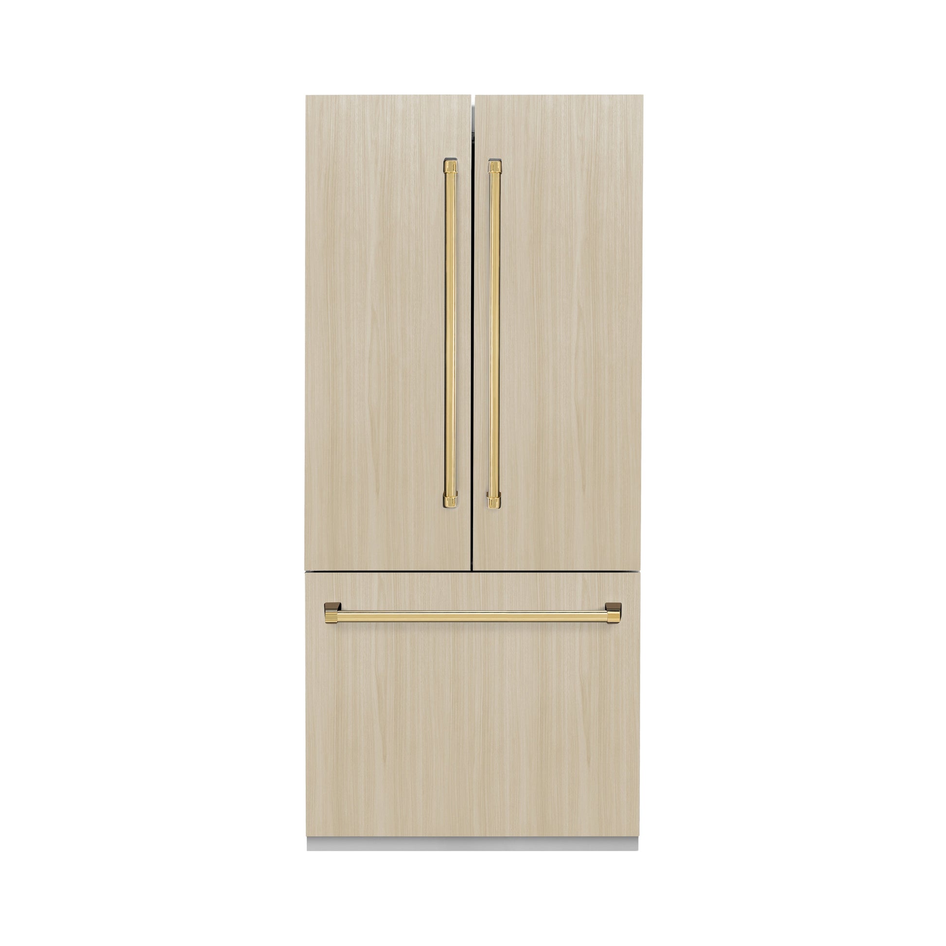 ZLINE Autograph 36" 19.6 cu. ft. Panel Ready Built-in 3-Door French Door Refrigerator with Internal Water and Ice Dispenser with Gold Handles, RBIVZ-36-G