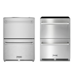 Create the ultimate cooling solution with this THOR Kitchen appliance package, featuring the 24" Built-in Double Drawer Refrigerator (TRF24U) and the 24" Indoor Outdoor Freezer Drawer. Both in sleek stainless steel, the refrigerator offers spacious dual drawers and convection cooling with an anti-fingerprint surface, while the versatile freezer drawer is perfect for indoor or outdoor use, complete with LED lighting and a modern design. Ideal for kitchens, patios, or entertainment spaces, this duo combines style, functionality, and convenience.