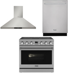 This Thor Kitchen Appliance Package is complete with a 36" Electric Range, 36" Range Hood and 24" Dishwasher.