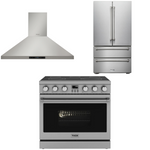 This Thor Kitchen Appliance Package is complete with a 36" Electric Range, 36" Range Hood and 36" Refrigerator.