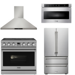 This Thor Kitchen Appliance Package is complete with a 36" Electric Range, 36" Range Hood, 36" Refrigerator and 24" Microwave.