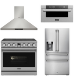This Thor Kitchen Appliance Package is complete with a 36" Electric Range, 36" Range Hood, 36" Refrigerator and 30" Microwave.
