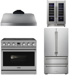 This Thor Kitchen Appliance Package is complete with a 36" Electric Range, 36" Range Hood, 36" Refrigerator and 24" Wine Cooler.