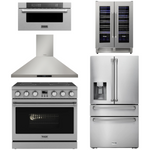 This Thor Kitchen Appliance Package is complete with a 36" Electric Range, 36" Range Hood, 36" Refrigerator, 30" Microwave and 24" Wine Cooler.