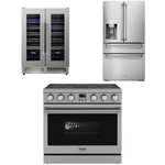 This Thor Kitchen Appliance Package is complete with a 36" Electric Range, 36" Refrigerator and 24" Wine Cooler.