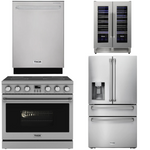 This Thor Kitchen Appliance Package is complete with a 36" Electric Range, 36" Refrigerator, 24" Dishwasher and 24" Wine Cooler.