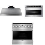 This Thor Kitchen Appliance Package is complete with a 36" Gas Range, 36" Range Hood and 24" Microwave.