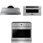 This Thor Kitchen Appliance Package is complete with a 36" Gas Range, 36" Range Hood and 30" Microwave.