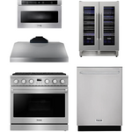 This Thor Kitchen Appliance Package is complete with a 36" Gas Range, 36" Range Hood, 24" Dishwasher, 24" Microwave and 24" Wine Cooler.
